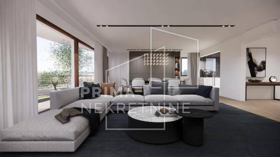 Pripadaju mu prizemlje i prvi kat, a sastoji se od dnevnog boravka s blagovaonicom, kuhinje, tri spavaće sobe, dvije kupaonice, wc-a, balkona, dvije terase te dva garažna mjesta i vanjsko parkirno mjesto.