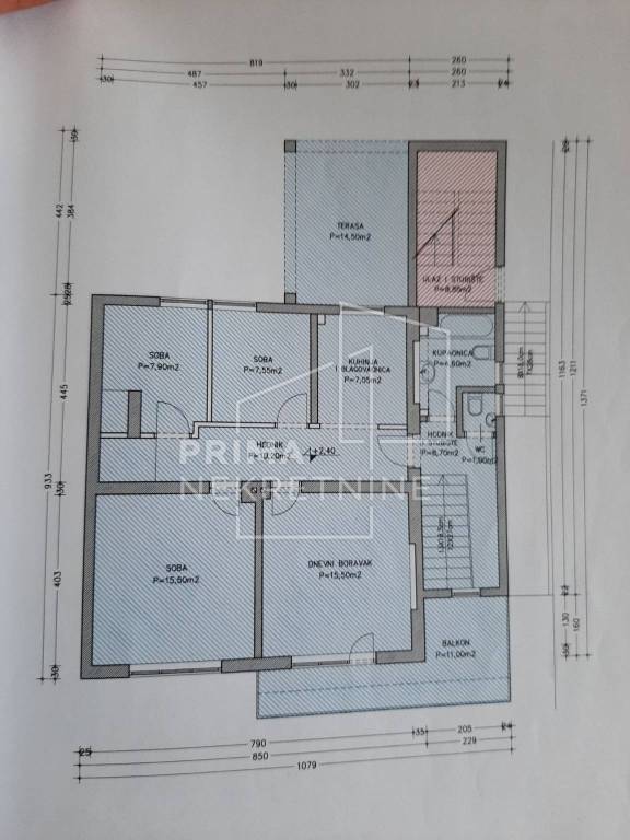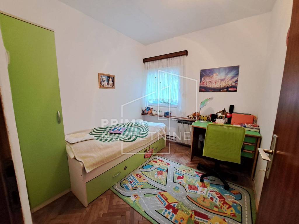 Sastoji od pet soba (četiri spavaće), kuhinje, blagovaonice, dvije kupaonice, wc-a, hodnika te dvije prostrane terase.