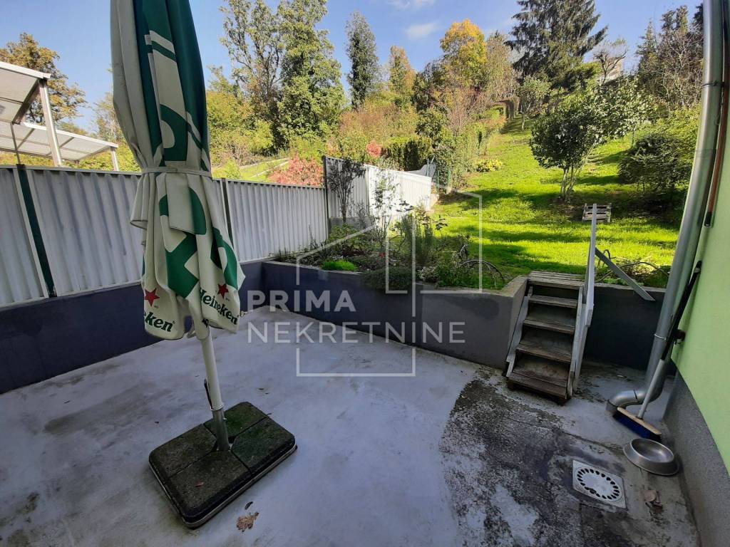 Stanu pripada garaža koja se nalazi na uličnom dijelu, tako da je moguće iz garaže vanjskim stepenicama doći do stana.