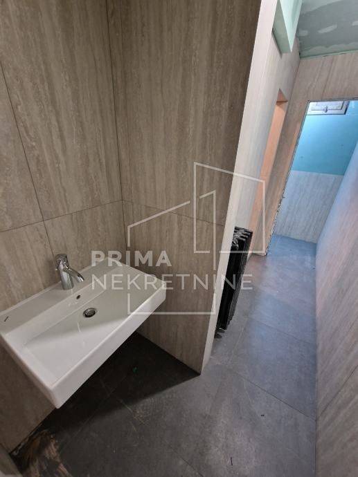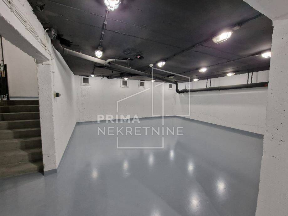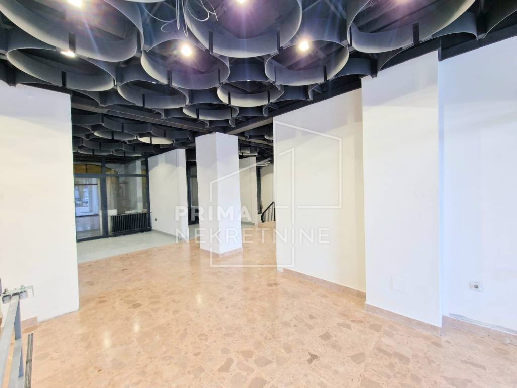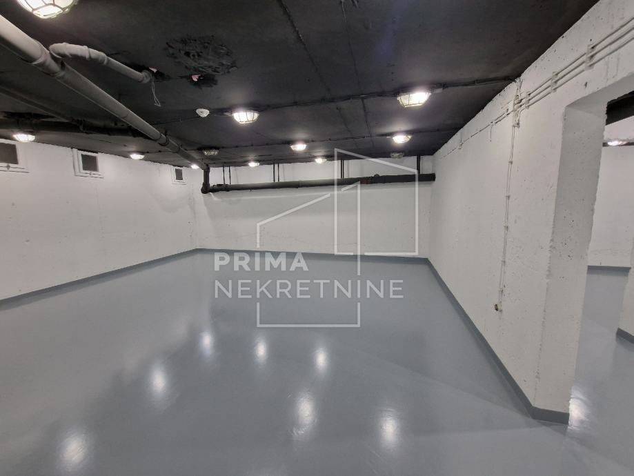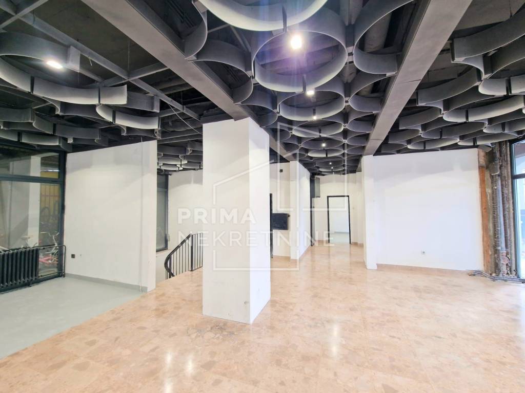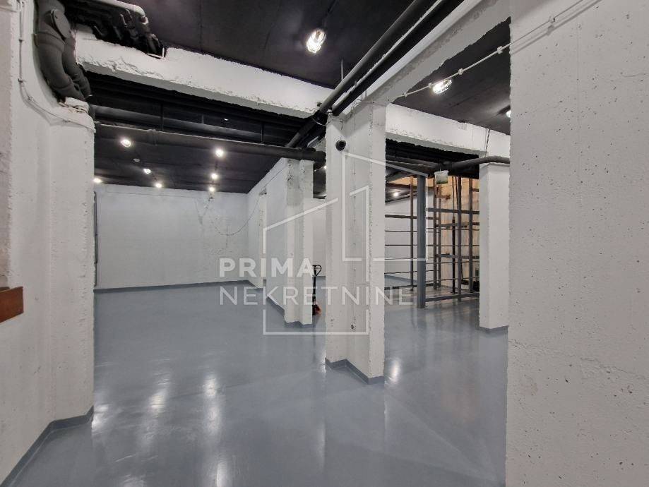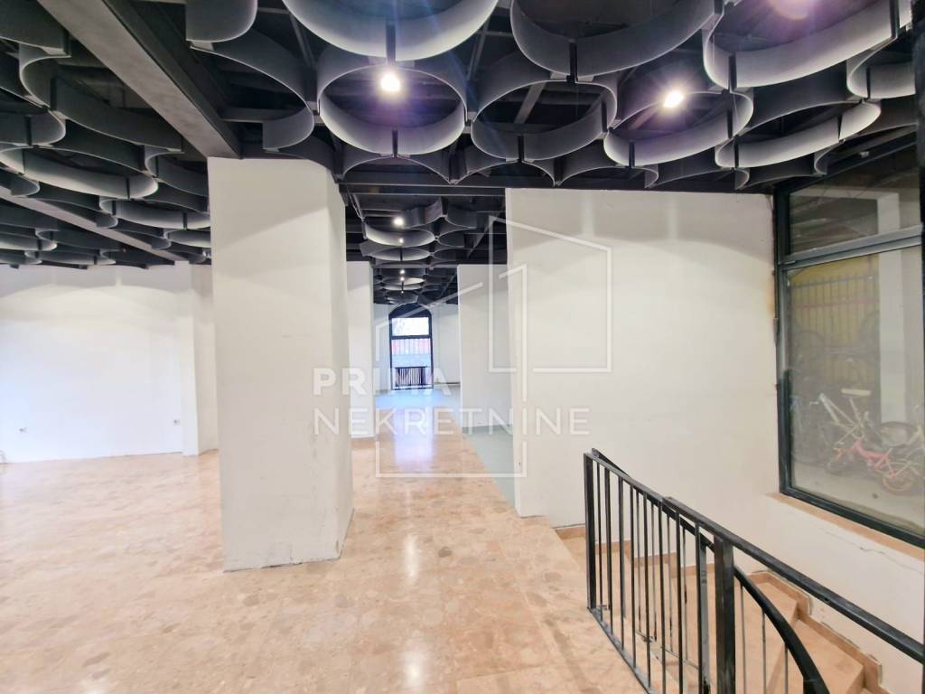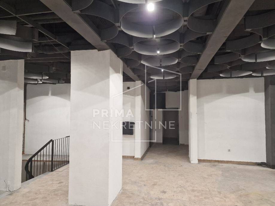 Raspoređen je tako da se u prizemlju nalazi 220 m2, a na -1 razini cca 335 m2. Moguće je koristiti još 150 m2 prostora koji nije u vlasništvu, ali do njega je moguć pristup samo z predmetnog prostora.