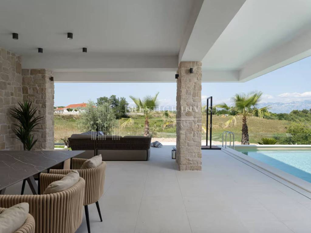 Ova novogradnja se nalazi na mirnoj lokaciji s pogledom na more i Velebit te se nalazi u blizini plaža, restorana, dućana, autobusne stanice, kafića i turističkog starog grada Nina.