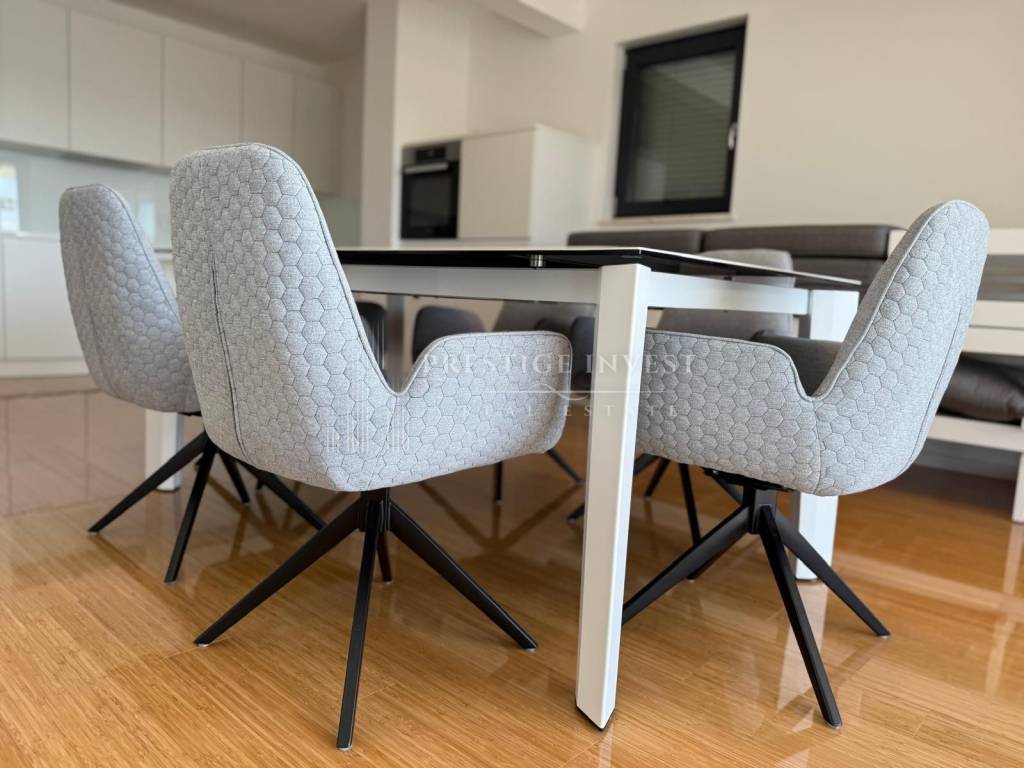 Stan je potpuno namješten i useljiv odmah. S balkona se pruža predivan pogled na more, što dodatno naglašava atraktivnost ove nekretnine.