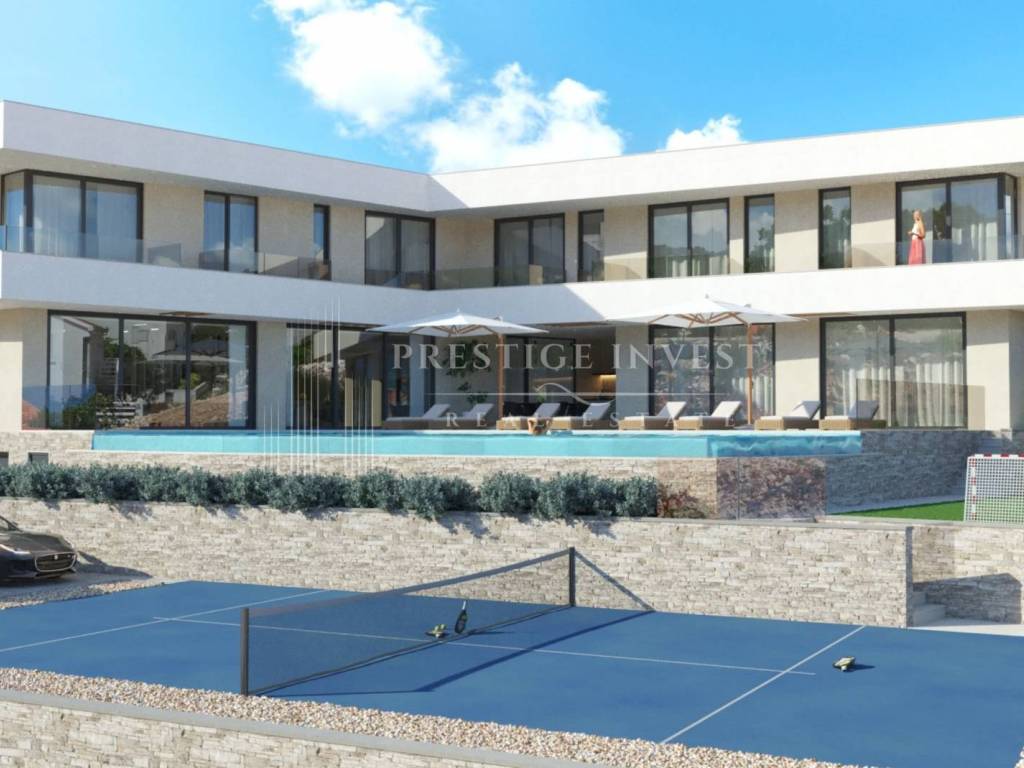 Prvi kat: prostor za zabavu, hodnik, stubište i dizalo, 5 prostranih spavaćih soba s vlastitim kupaonicama i balkonima