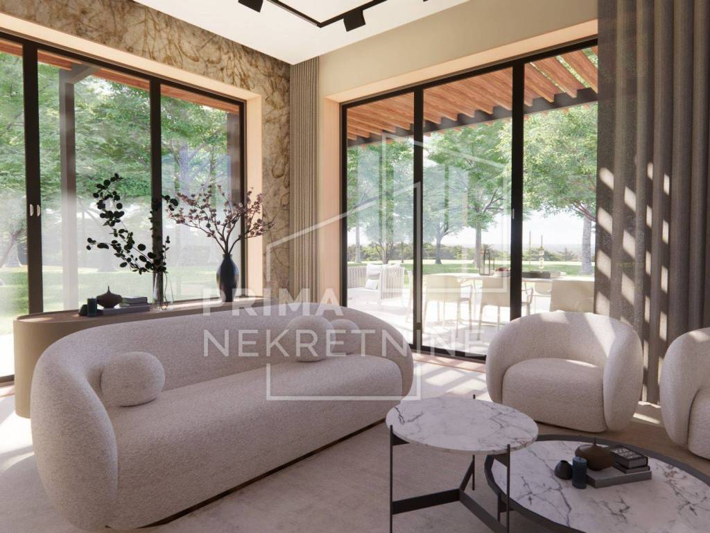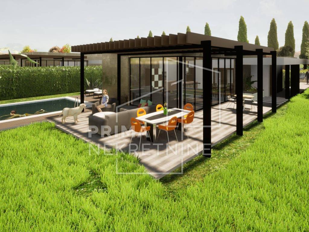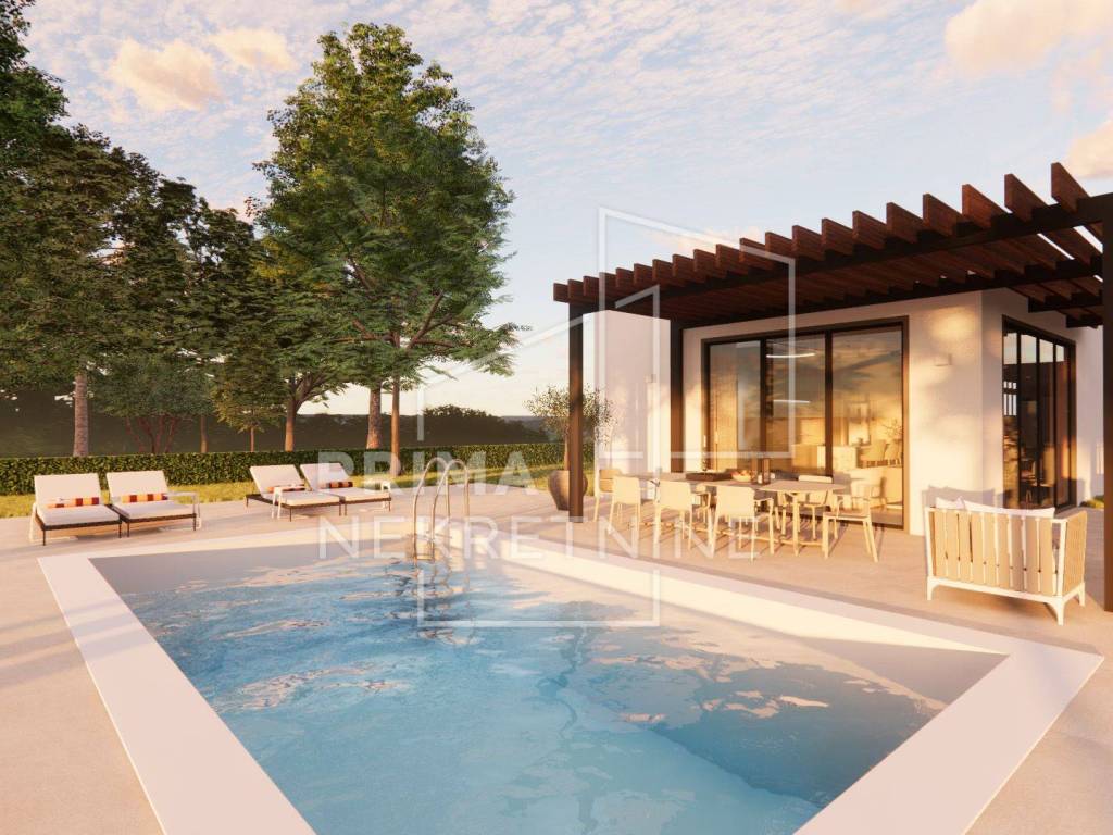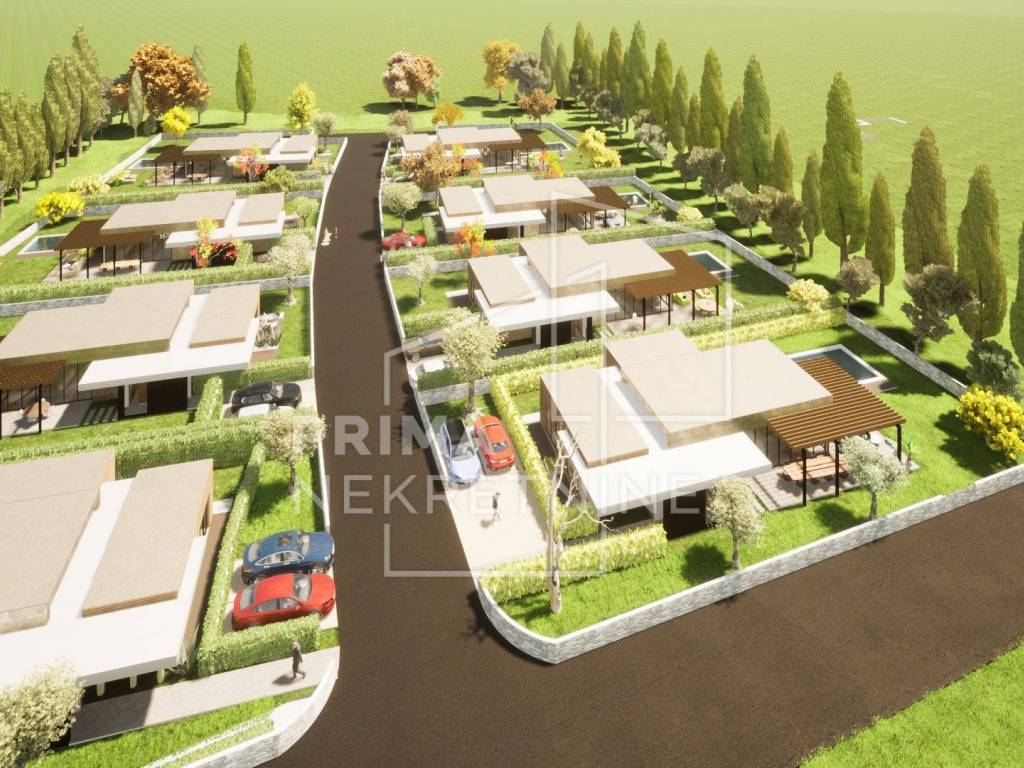 Svaka vila se sastoji od: - vlastitog bazena površine 30 m2 - 3 spavaće sobe svaka sa svojom kupaonicom i walk.in garderobom - dnevni boravak otvorenog koncepta s kuhinjom i blagovaonicom - pomoćne prostorije (praonica rublja, toalet za goste itd.) - prekrasna terasa - 2 parkirna mjesta