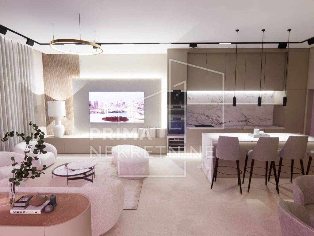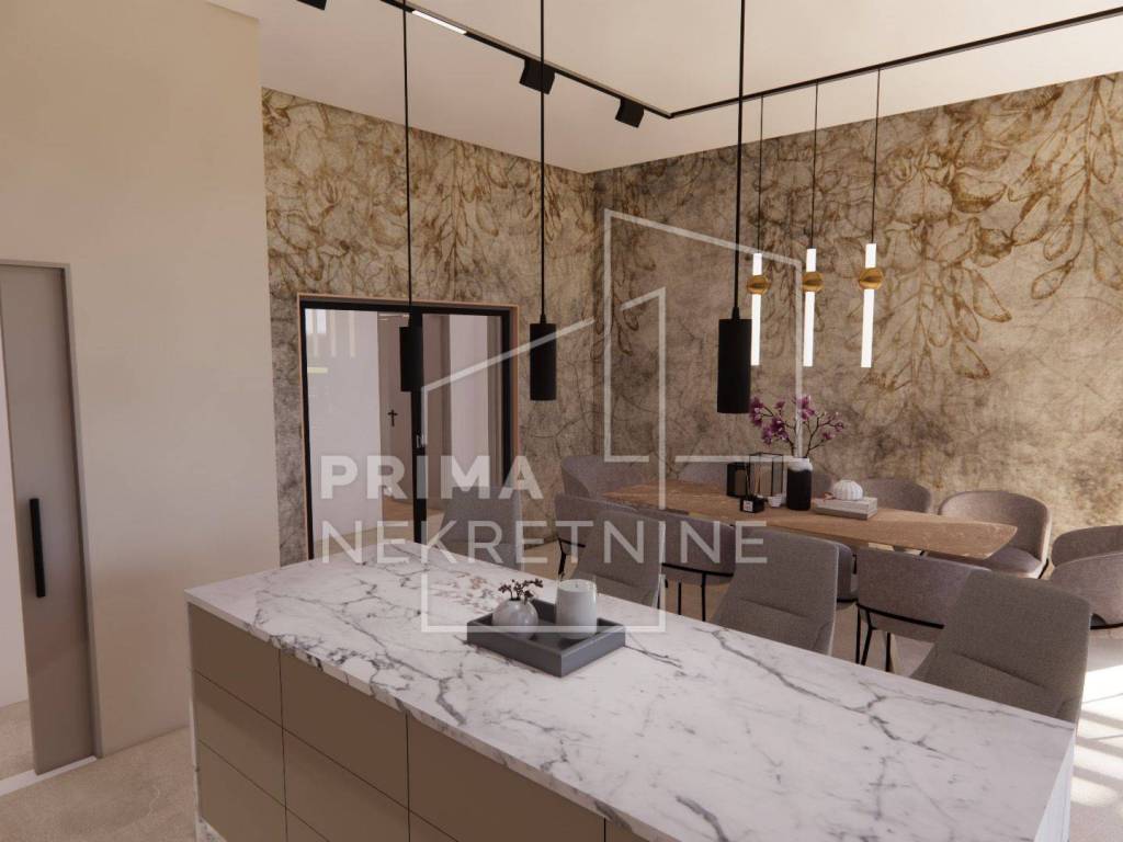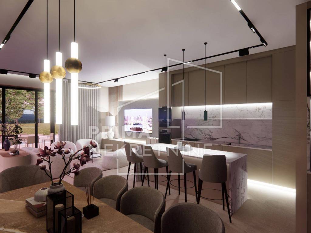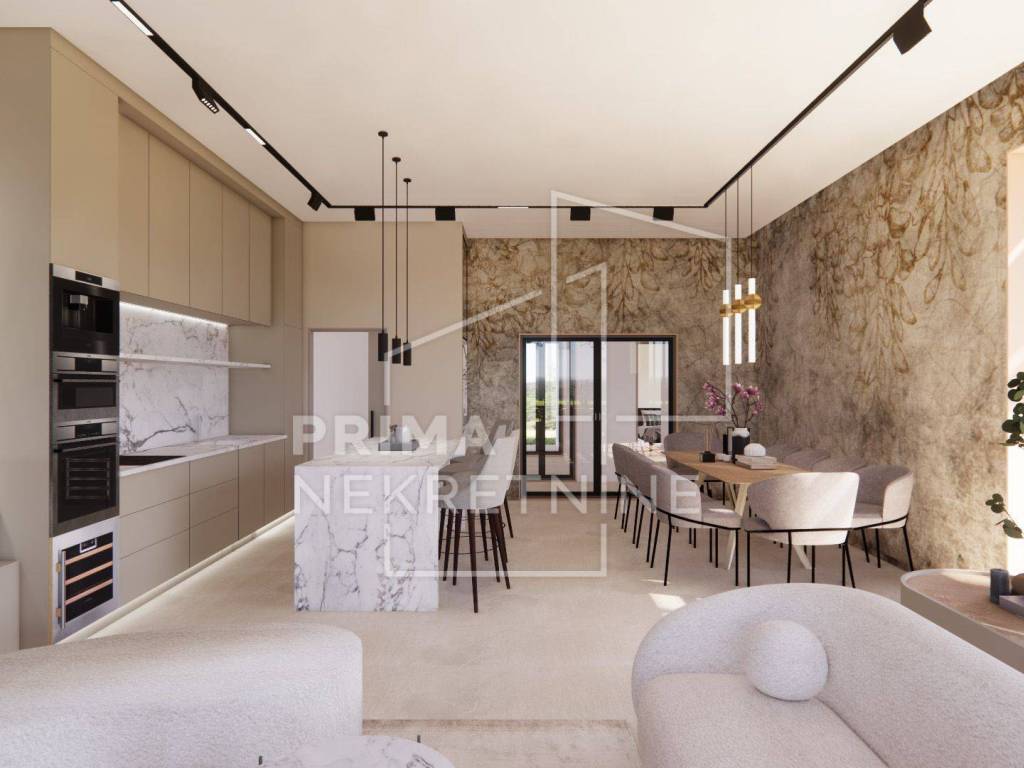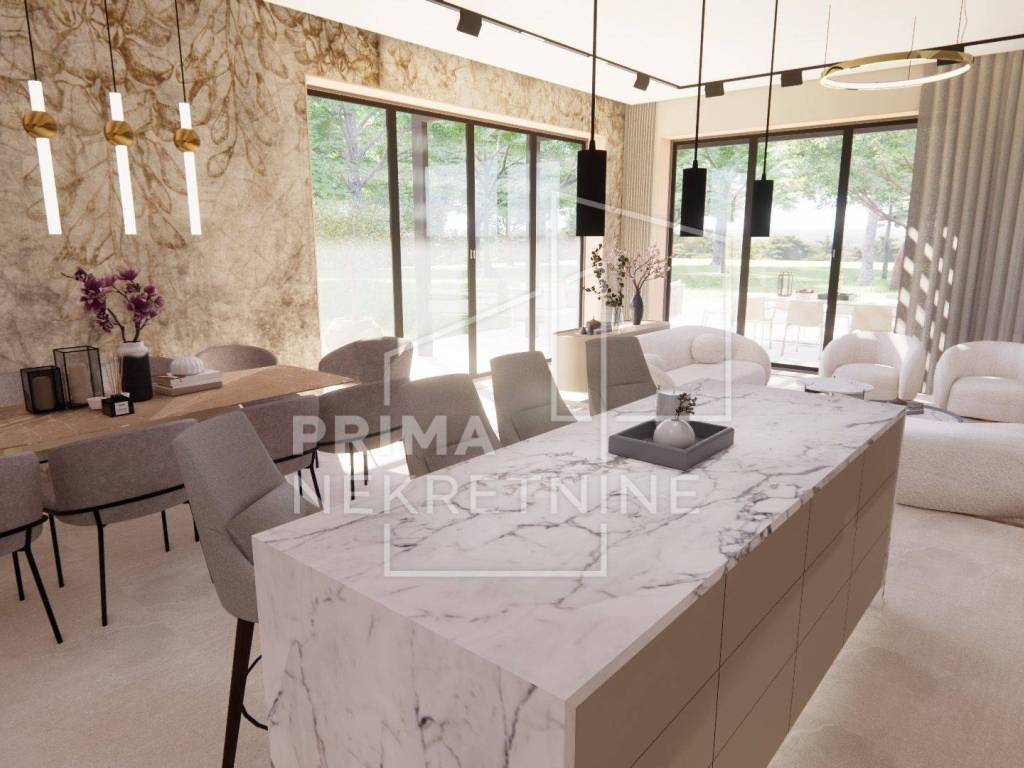Svaka vila se sastoji od: - vlastitog bazena površine 30 m2 - 3 spavaće sobe svaka sa svojom kupaonicom i walk.in garderobom - dnevni boravak otvorenog koncepta s kuhinjom i blagovaonicom - pomoćne prostorije (praonica rublja, toalet za goste itd.) - prekrasna terasa - 2 parkirna mjesta