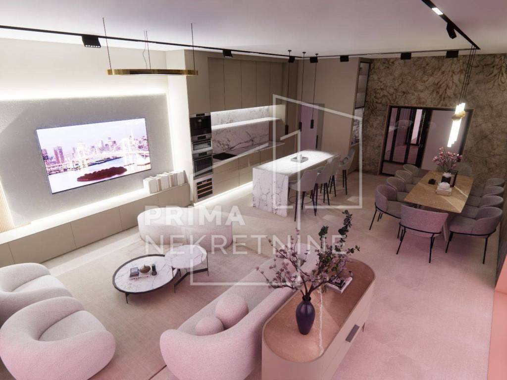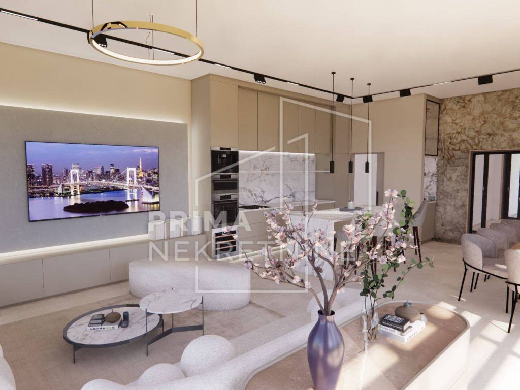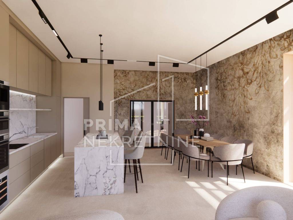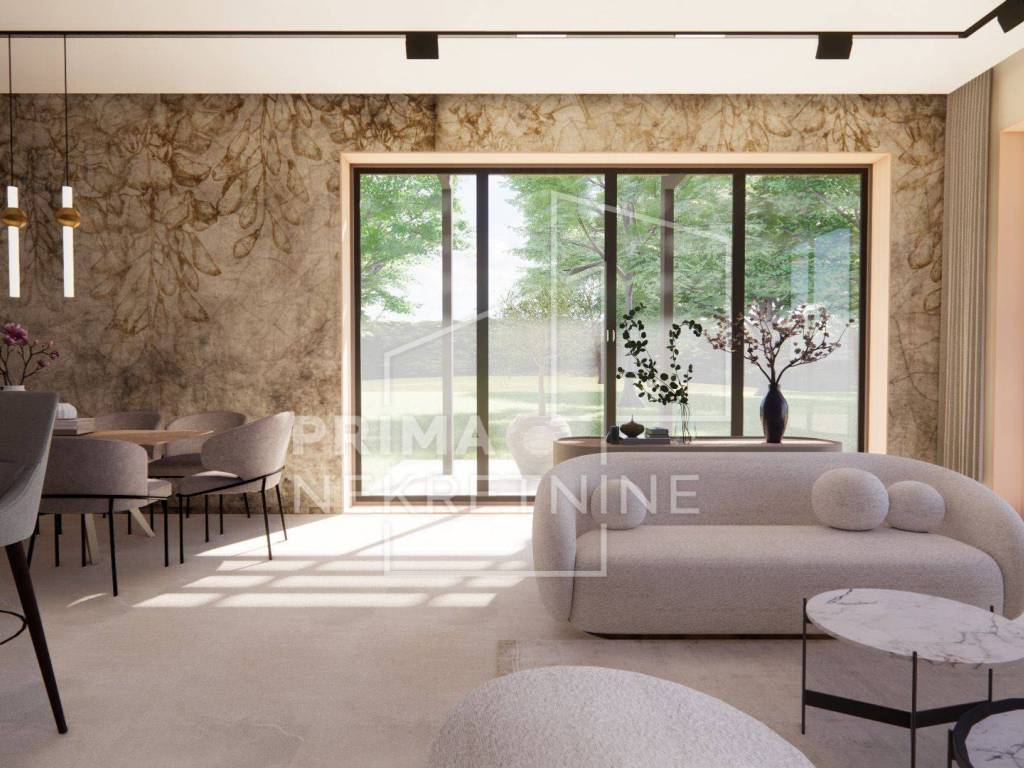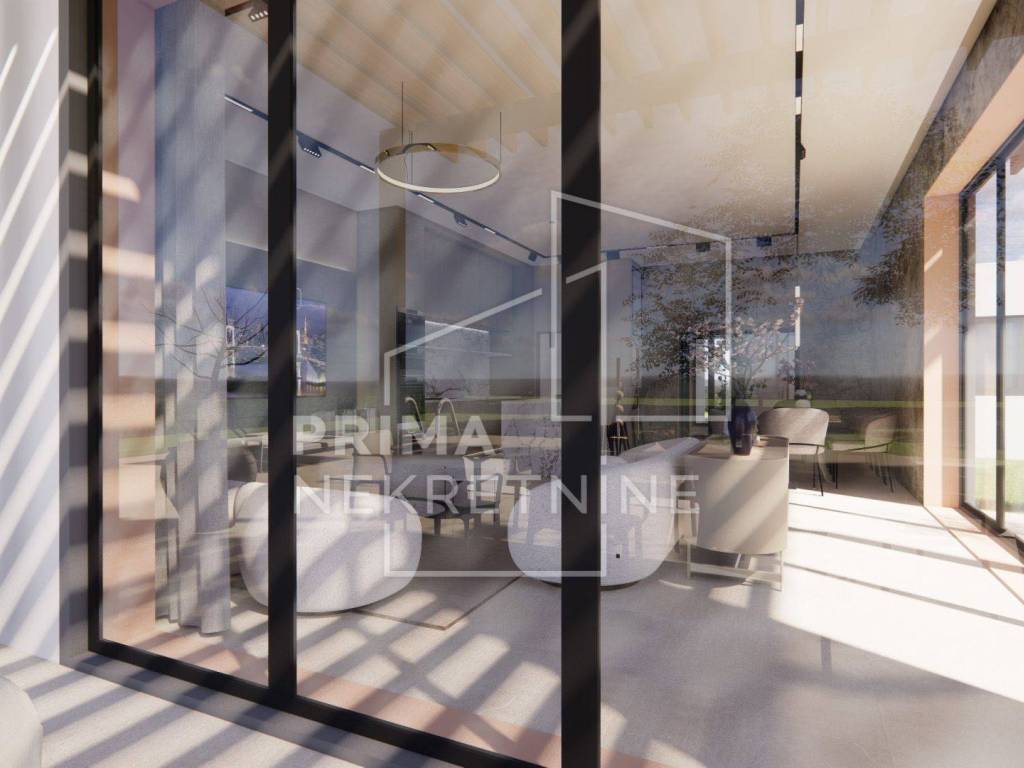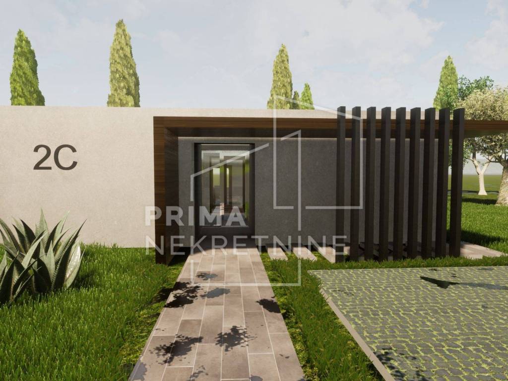 TEHNIČKE KARAKTERISTIKE KONSTRUKCIJA - Cijeli objekt: izgrađen bez toplinskih i zvučnih mostova. Građevina se oslanja na plutajuću ploču ispod koje će se na podložni beton postaviti toplinska izolacija i hidroizolacija. Zidovi: termo-izolacijska opeka debljine 25 cm. Postavljene protupotresne veze. Zgrada će biti pokrivena armirano betonskom pločom. Krov: krovna folija - zaštićeno sitnim kamenčićima - krovnim šljunkom. Fasada: izolirana toplinskom izolacijom - stiropor. Unutarnja strana zidova: obrađena mehaničkim žbukama. Cementni estrih postavljen po cijeloj zgradi. Spušteni stropovi (knauf ploče postavljene na konstrukciju): izvedba po cijeloj zgradi. Sve instalacije: skrivene u spuštenom stropu.