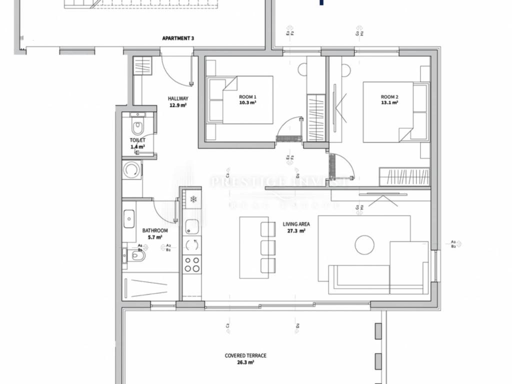 Stan se ističe prostranim dnevnim boravkom, velikom natkrivenom terasom idealnom za uživanje na otvorenom te vrhunskim standardom gradnje i opreme.