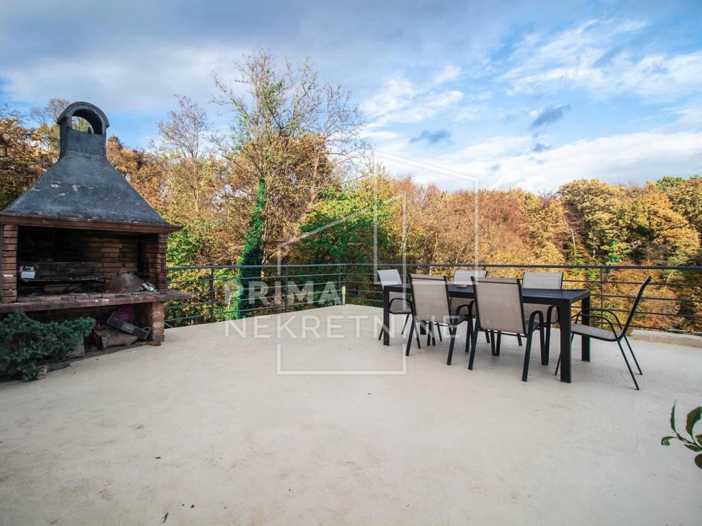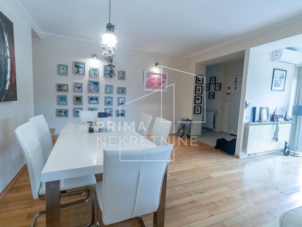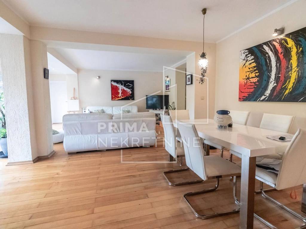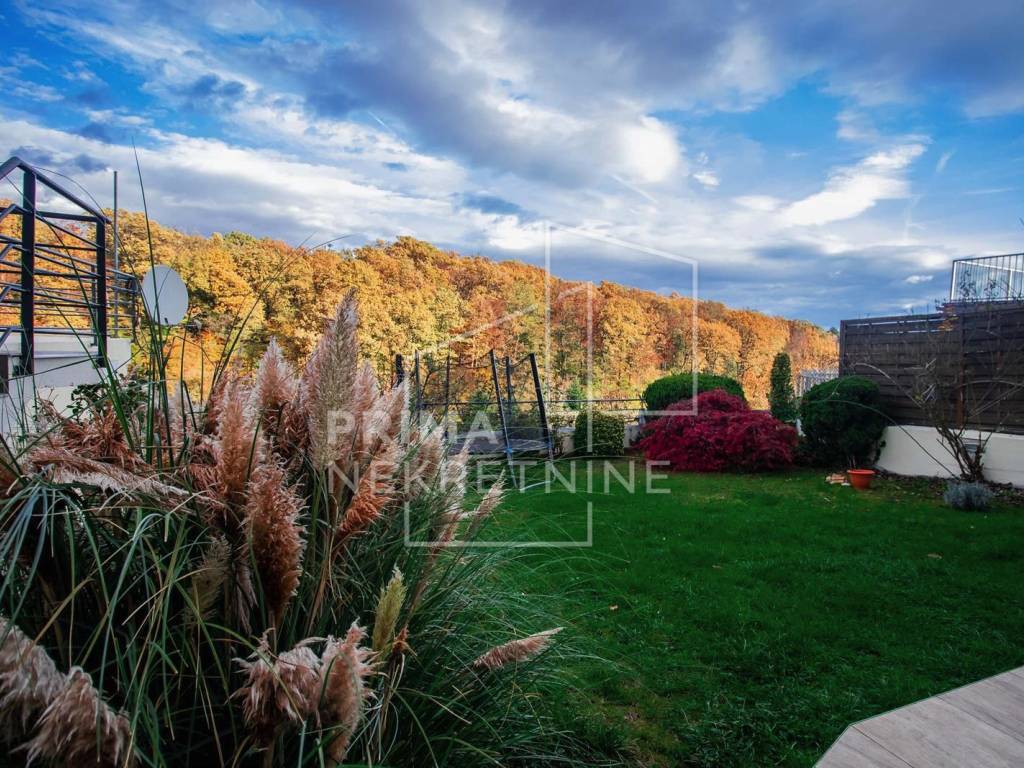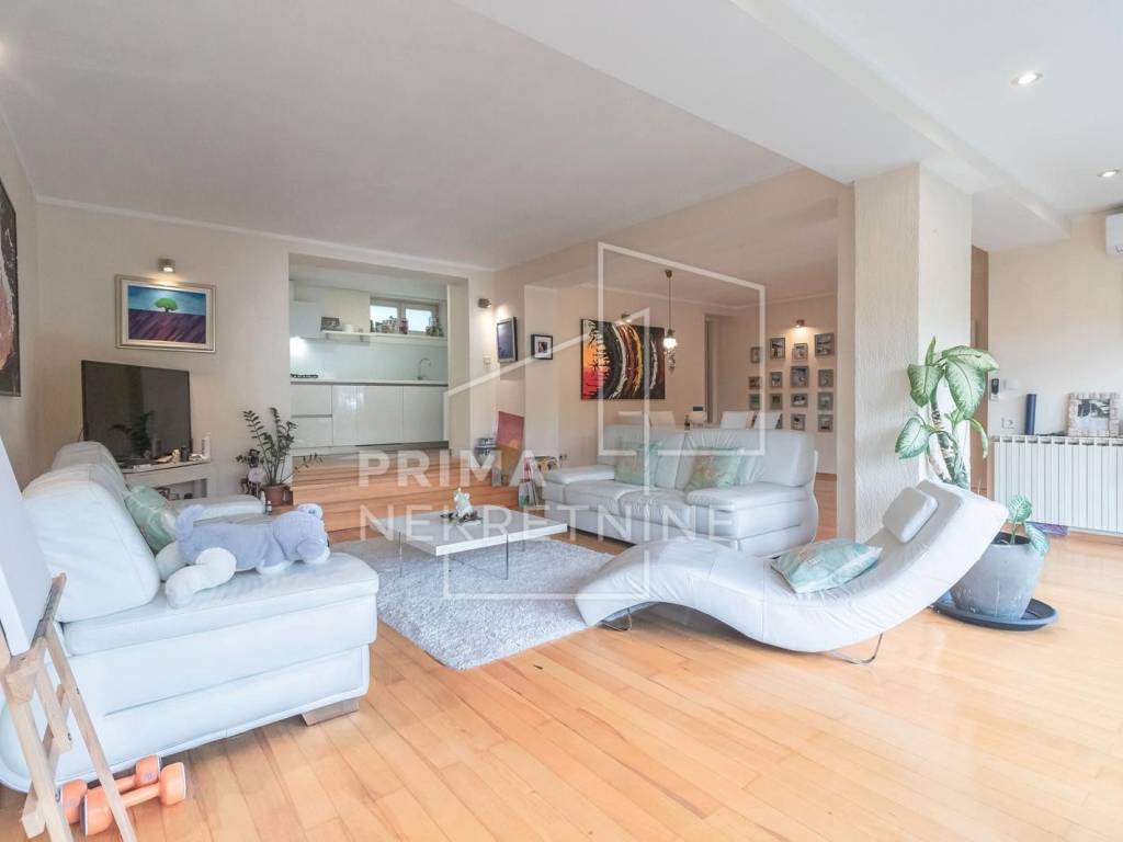 Četverosoban stan ukupne površine 120 m2 + 100 m2 vrta. Nalazi se 1200 m od trga dr. Franje Tuđmana u zelenilu s raritetnim pogledom na šumu Jelenovac i grad.