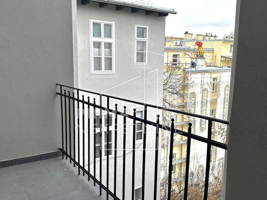 Sastoji se od ulaznog hodnika, velikog dnevnog boravka, dvije velike prolazne spavaće sobe, kupaonice bez WC-a, zasebnog WC-a, kuhinje, smočnice, djevojačke sobe i loggie s pogledom na dvorišnu stranu. Visina stropa 3.30 m, dvostrane orijentacije - istok zapad.