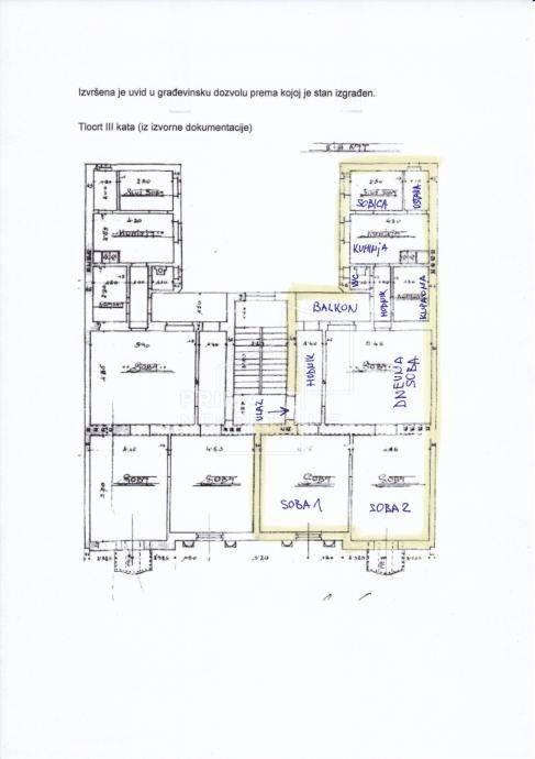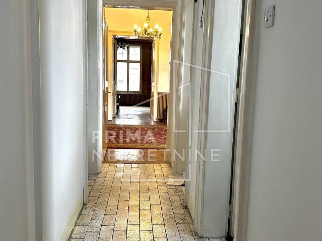 U prodaji četverosoban stan površine 115 m2 u centru grada Zagreba, na trećem katu zgrade bez lifta izgrađene 1910. godine.