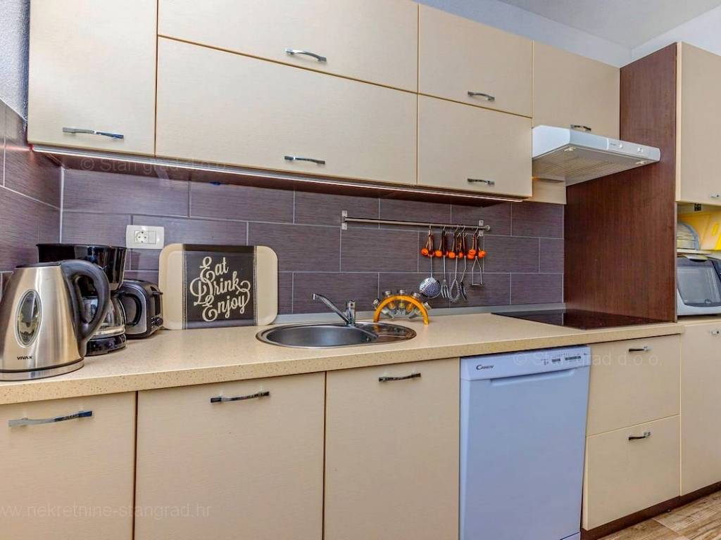 U našoj ponudi nekretnina je vrlo kvalitetna kuća za turistički boravak na sjevernom Jadranu, na uobičajeno poželjnoj i naprednoj kvarnerskoj destinaciji Crikvenička Rivijera. Istaknuta je kuća smještena na zanimljivoj lokaciji nedaleko centra primorskog odredišta Crikvenica. Gledajući strukturno, ovo je samostojeća kuća katnica s bazenom i pripadajućom okućnicom. Kuća vrlo dobre gradnje je sagrađena na 2 visinski funkcionalne etaže. Kuća sadrži dva odvojena stana uhodana za turistički najam. Kuća zauzima prostor ukupne površine cca. 180 m2. Svaka stambena jedinica ima dnevni boravak, kuhinja, s blagovaonom, 2 sp. sobe, kupaonica s WC-om. Održavani interijer nekretnine je opremljen setom kvalitetne tehničke opreme i komadima dobrog namještaja. U okviru posjeda je odlično uređena okućnica s grijanim bazenom s morskom vodom, pomoćnim objektom, grill prostorom i vanjskim tušem. Na okućnici u fazi je izgradnja još jedne samostojeće kuća, prizemnice od 50 m2, koja će se sastojati od 2 spavaće sobe, dnevnog boravka s kuhinjom i blagovaonom i kupaone. Uz prethodno, nije zanemarivo kazati da kuća ima lijep pogled na šumu i prirodno raslinje. Ova nekretnina je u vlasništvu fizičke osobe i na ime njenog prijenosa kupac kuće je u obvezi plaćanja poreza na promet nekretnine u visini 3%. Prodavatelj kuće garantira kompletne vlasničke dokumente i uredan prijenos nekretnine. S veseljem ćemo prihvatiti ulogu vašeg partnera u potrazi i sigurnoj akviziciji nekretnine ne Kvarneru. Kupcu ove nekretnine će prodajni tim agencije Stan Grad Immobilien rado pomoći kod prijenosa vlasništva nekretnine u zemljišnu knjigu te prijenosa računa za struju, vodu i odvoz smeća na svoje ime.