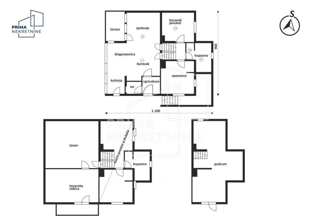 - Podrum – tri prostorije, dovoljne kao spremište, vinski podrum ili kreativni hobi prostor.