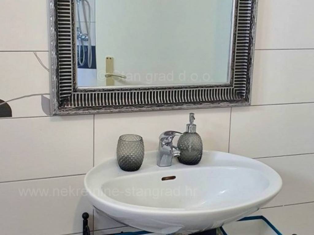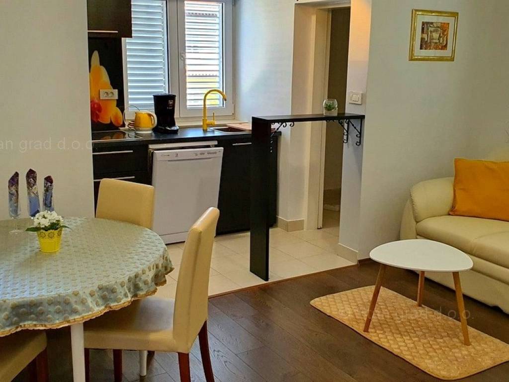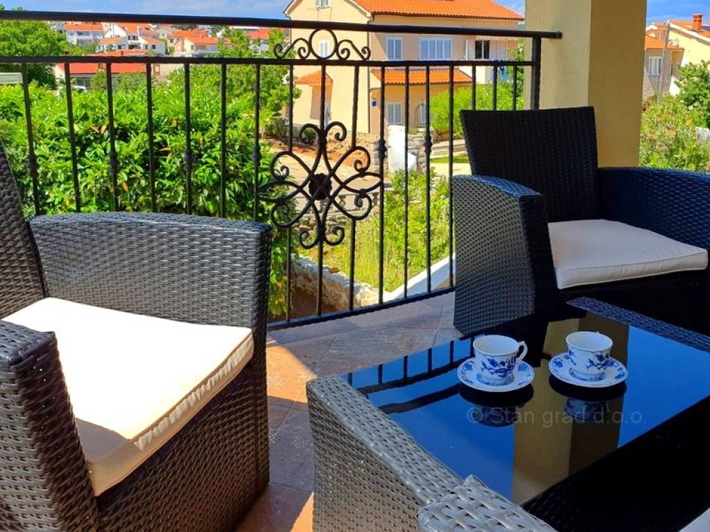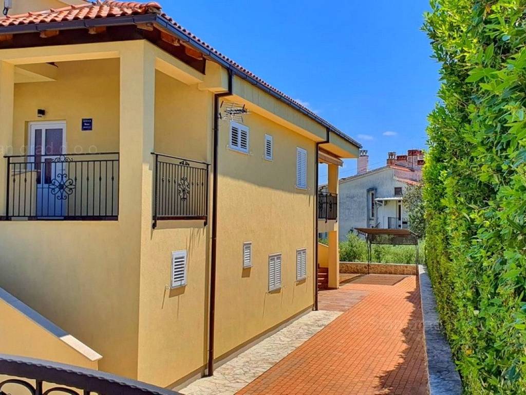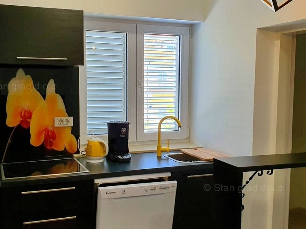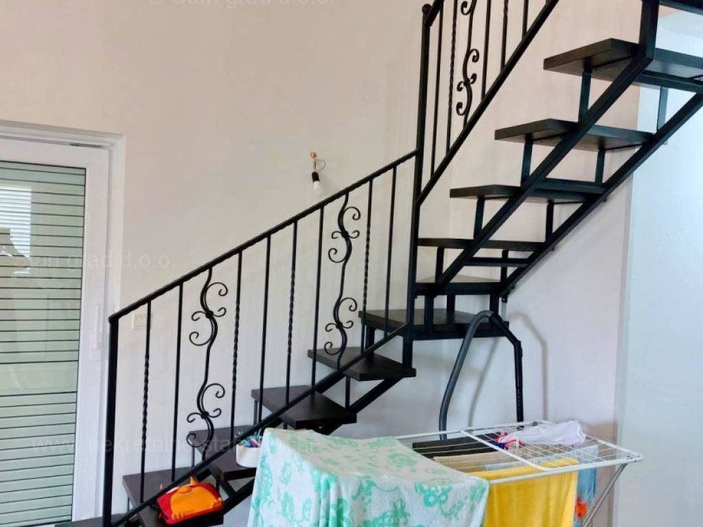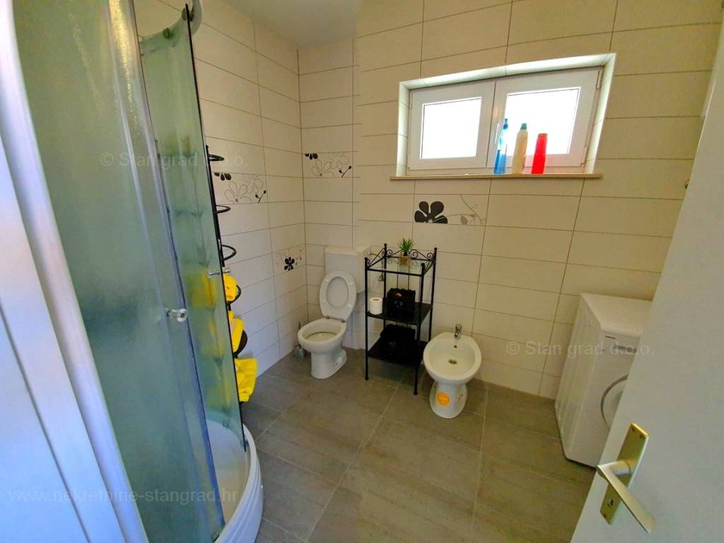 Ova prekrasna kuća, smještena u srcu grada Krka na prekrasnom otoku Krku, pruža jedinstvenu priliku za život uz obalu Jadranskog mora. Uz vrhunsku gradnju, ova nekretnina će Vas oduševit udobnošću, šarmom i pomno biranim detaljima. 2018. godine napravljena je nadogradnja i potpuno preuređenje kuće. Korišteni su vrhunski materijali, a pri renovaciji vlasnici su poštovali tradiciju primorske gradnje vodeći računa o kvaliteti u svakom detalju: rukohvati su rađeni od kovanog željeza i bračkog kamena, unutarnje stepenice od prvoklasnog stodvadesetgodišnjeg podravskog hrasta dok je benkovački kamen korišten za zidnu ogradu, ulazni pristup i parking. Sigurnost doma osigurana je protupotresnim blokovima i armiranim betonom. Posebni ugođaj posvećen je vrtnom dijelu okućnice koji je obnovljen prvoklasnom zemljom podobnom za sadnju raslinja, stabla i cvijeća po vlastitom ugođaju. Ova dvojna kuća sastoji se od dva stana, zasebnih ulaza kao idealna opcija za više obitelji ili investiciju, a opet, uz mogućnost povezivanja ova dva stana u jedan komforni, obiteljski stan. Jedan od stanova ima i prostranu galeriju koja daje dodatni šarm i ugođaj u prostoru. Stanovi su građeni i opremljeni najkvalitetnijim materijalima i opremom: stolarija je od kvalitetnih profila njemačkog proizvođača SALAMANDER, alu rolete dok stakla i austrijska tenda imaju UV zaštitu. Unutarnja stolarija je od punog drveta, ugrađena je Mitsubishi klima, a stanovi su opremljeni modernom kuhinjom te novim, vrlo malo korištenim namještajem i TV uređajem. Iznad stanova je tavan u cijelosti uređen kvalitetnim brodskim podom, Velux krovnim prozorom te je pripremljen za boravak / stanovanje. U vlasništvu ove kuće je i uređena okućnica od 327 m2. Na pripadajućoj je okućnici ispod nadstrešnice osiguran prostor za parkiranje 4 i više vozila, a kuća ima i garažu za parkiranje vozila te spremište.