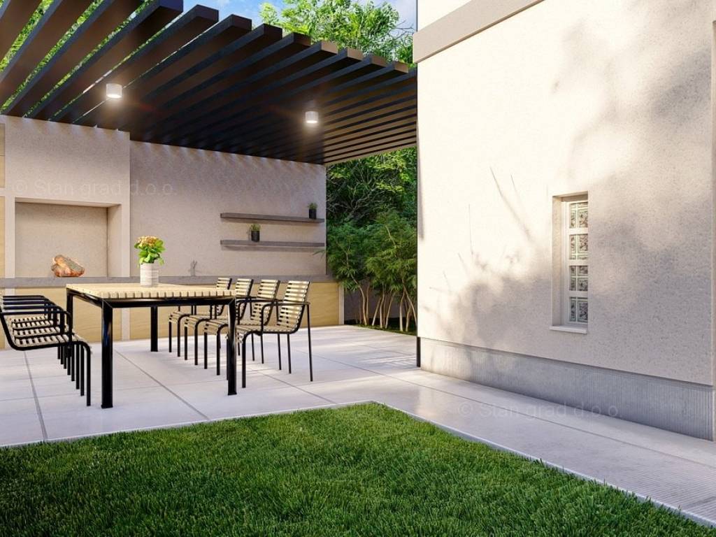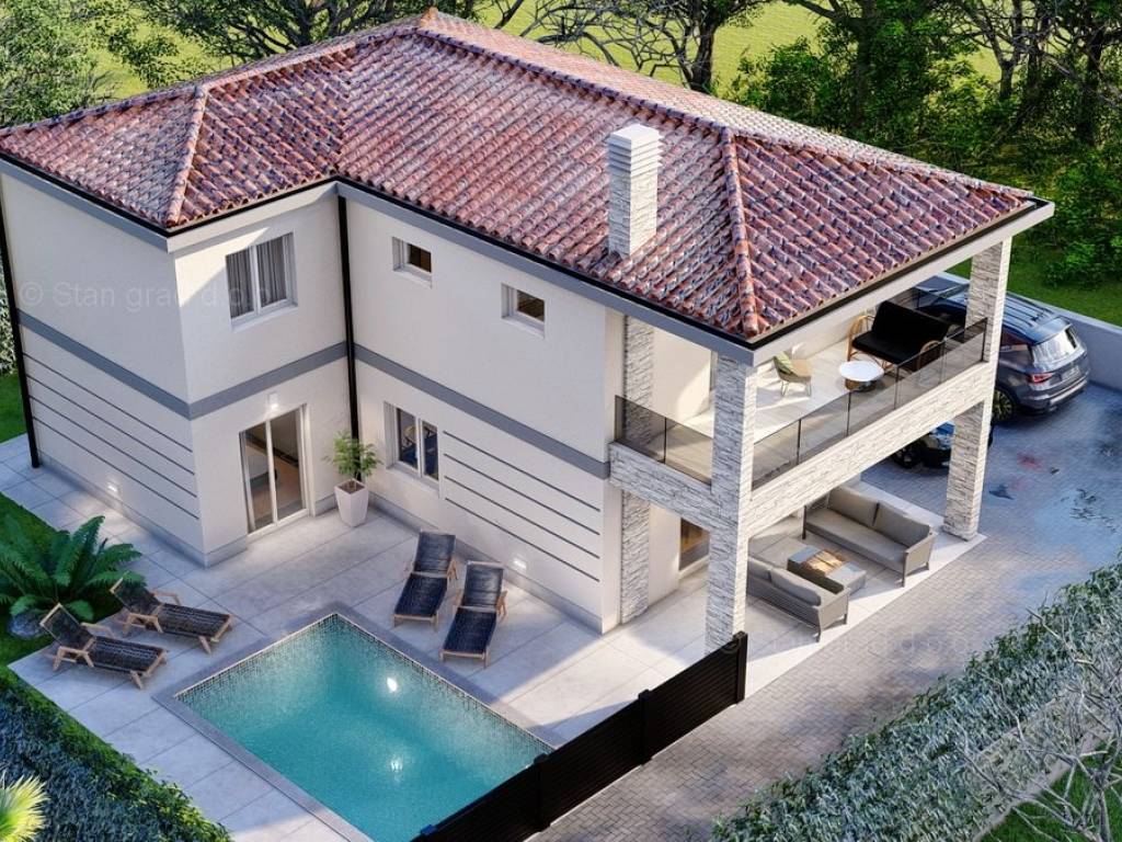 Kod agencije Stan Grad Immobilien na Kvarneru je u prodaji iznimna mediteranska urbana kuća građena po modernom projektu na razvijenom i atraktivnom sjevernojadranskom području otok Krk. Ova je kuća smještena u lijepom primorskom mjestu Malinska na vrhunskoj lokaciji nedaleko mora. Prema vrsti objekta, građevina se može kategorizirati kao samostojeća kuća katnica. Suvremeno građena kuća se sastoji od prostora raspoređenog na ukupno 2 etaže. Površina ove kuće iznosi ukupno 170 m2. Tom površinom obuhvaćeni su dnevni boravak i kuhinja, 4 spavaće sobe, 4 kupaonice i terasa. Posebnu čar ovom posjedu daje iznimno uređena okućnica koja sadržava bazen i sunčalište. Vlasništvo ovog posjeda osigurava dva parkirna mjesta. Osim ranijih karakteristika, važno je kazati kuća ima lijep pogled na more i priobalje. Ova je kuća vlasništvo fizičke osobe i na prijenos njenog vlasništva obračunava se porez na promet nekretnina u visini 3%. Prodavatelj kuće jamči urednu vlasničku dokumentaciju te brz prijenos vlasništva nekretnine. Srdačno ste dobrodošli na naš zlatni otok Krk i u našu kvarnersku poslovnicu. Posrednik Stan Grad Immobilien će vam pomoći u prijenosu vlasništva nekretnine i računa za komunalne usluge.