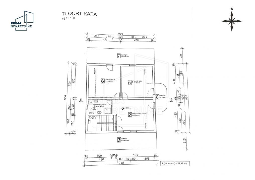 Kat: - dvije velike spavaće sobe (svaka cca 19 m2) - dodatni dnevni boravak (21 m2) - kupaonica s tuš kabinom