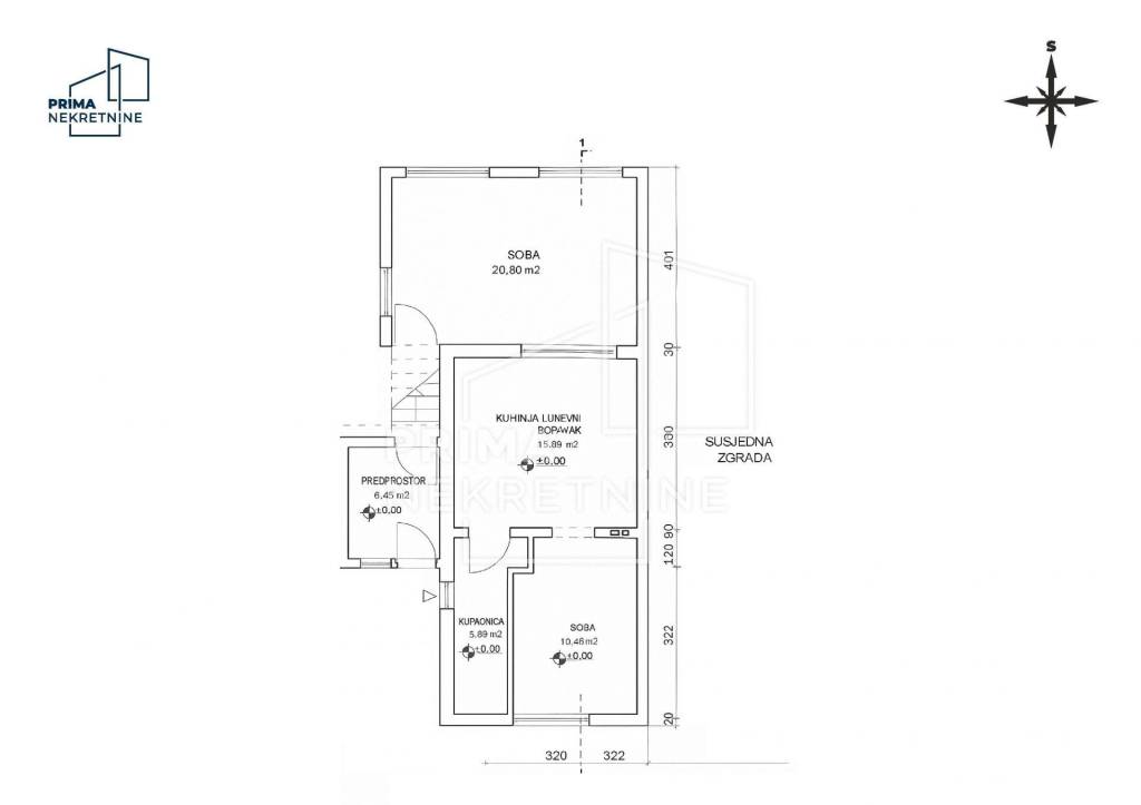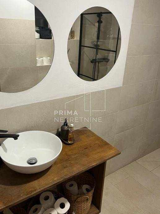 Svaka etaža ima zaseban ulaz, a sastoji se od prizemlja u kojem se nalazi: kuhinja s blagovaonicom, kupaonica, dnevni boravak, dvije spavaće sobe i terasa od 50 m2, prvog kata u kojoj se nalaze dvije spavaće sobe, kuhinja, predsoblje, kupaonica i terasa od 30 m2 te drugog kata, odnosno potkrovlja, koji se sastoji od spremišta, velikog dnevnog boravka, kuhinje, spavaće sobe, kupaonice i terase od 18 m2.