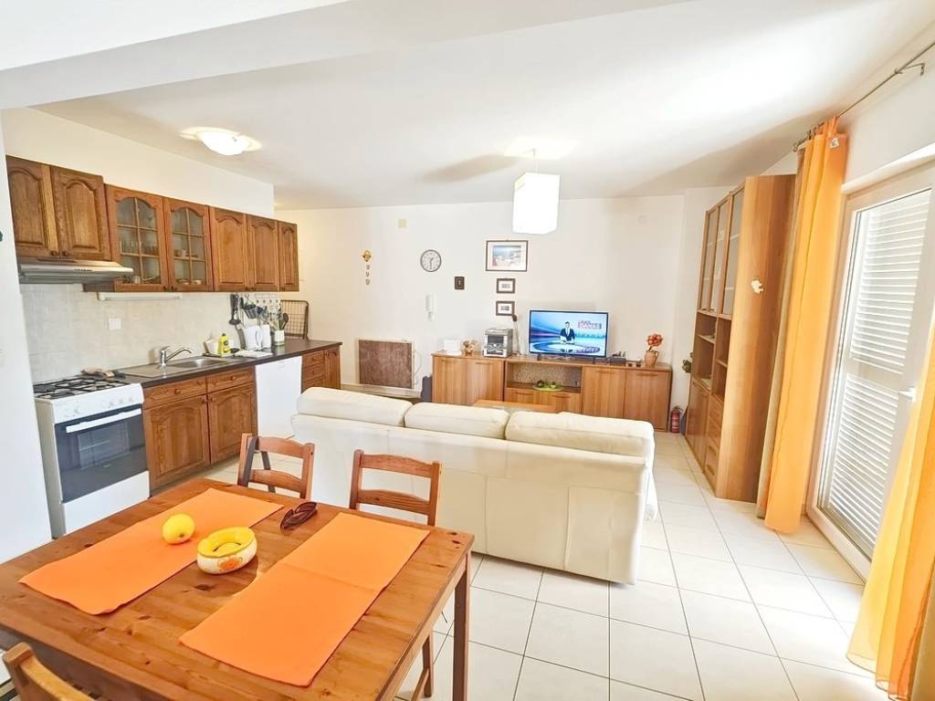 U našoj ponudi je vrlo kvalitetan apartman za turistički boravak na sjevernom Jadranu na uobičajeno poželjnoj kvarnerskoj destinaciji otok Krk. Ponuđeni apartman je na urbanoj i uređenoj lokaciji, blizu mora, centra i svih potrebnih sadržaja u gradu Krku. Prema vrsti nekretnine, ovo je jednoetažni apartman srednje veličine. U okviru vrlo lijepe građevine, apartman je pozicioniran na prizemnoj etaži. Površina ovog apartmana iznosi ukupno 61 m2. Ovu površinu zauzimaju dnevni boravak i kuhinja s blagovaonicom, 2 spavaće sobe, kupaonica i terasa. Interijer nekretnine je vrlo dobro održavan te kompletno opremljen svim potrebnim tehničkim uređajima i kvalitetnim namještajem. Svakako je za istaknuti da opisanoj nekretnini pripada iznimno lijepo uređeno i dobro održavano dvorište površine cca 92 m2. U vlasništvu ovog apartmana je uređen parkirni prostor za parkiranje dva automobila. Povrh navedenog, može se napomenuti i da je apartman orijentiran tako da pruža lijep pogled na simpatičan primorski krajolik i bližu okolicu naselja. Ovaj je apartman vlasništvo fizičke osobe pa je kupac prilikom prijepisa njegovog vlasništva na svoje ime u obvezi plaćanja poreza na promet u visini 3%. Prodavatelj jamči za urednost relevantne tehničke i vlasničke dokumentacije, kao i za mogućnost brzog i nesmetanog prijenosa vlasništva apartmana na kupca. Obratite nam se s povjerenjem na adresi poslovnice na otoku Krku i bit ćemo vaš partner za sigurnu kupnju nekretnine na Kvarneru. Osim stručne prezentacije i predočenja pravnog stanja nekretnine, agenti posredničkog ureda Stan Grad Immobilien pomoći će Vam u kupoprodaji i prijenosu vlasništva apartmana na svoje ime.