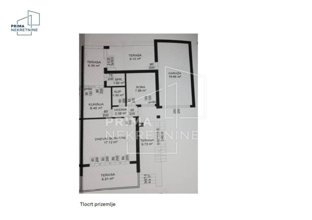 Sastoji se od dvije potpuno odvojene i opremljene stambene jedinice te dodatnog studio apartmana koji je idealan za turistički najam ili smještaj gostiju. Ukupna stambena površina iznosi 126 m2.