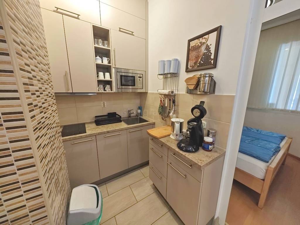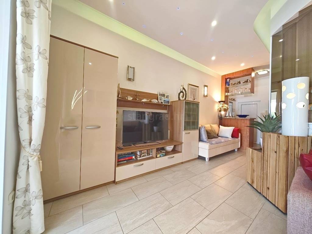 Ukupna površina apartmana iznosi 68 četvornih metara. Prostor uključuje zatvoreni predprostor u funkciji verande, iz kojeg se ulazi u dnevni boravak s kuhinjom. Apartman ima jednu spavaću sobu i kupaonicu. Interijer je vrlo dobro očuvan, potpuno opremljen svim potrebnim uređajima i kvalitetnim namještajem, što omogućuje trenutačno korištenje bez dodatnih ulaganja. Apartman ima dva ulaza, što dodatno doprinosi njegovoj funkcionalnosti.