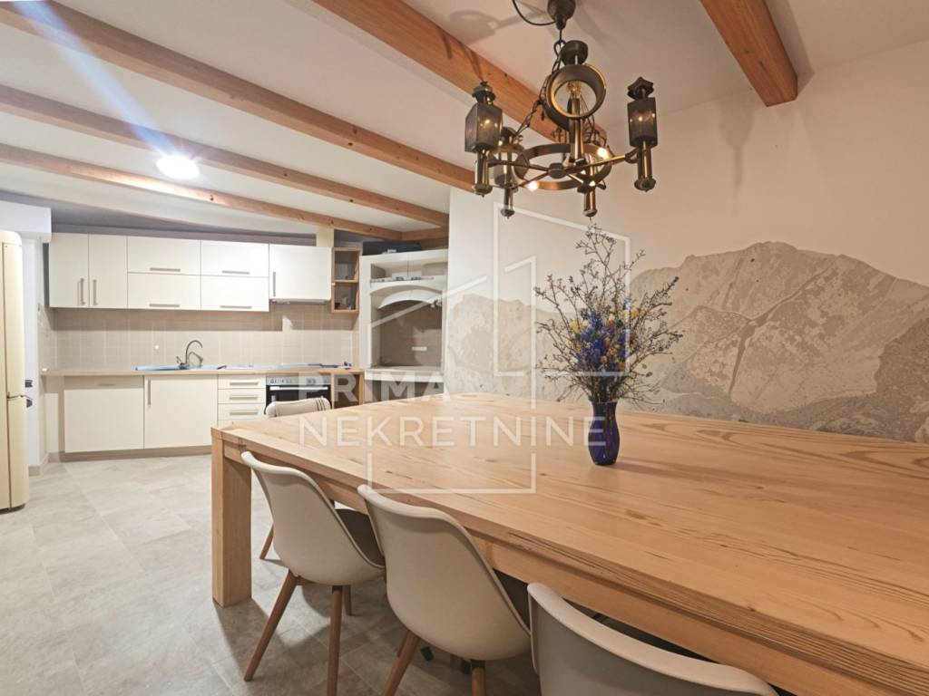 Kuća se proteže na četiri etaže i nudi iznimno funkcionalan raspored: - Prizemlje: prostrana kuhinja s velikim prostorom za blagovanje i druženje te gostinjski WC - Prvi kat: udoban dnevni boravak - Drugi kat: dvije spavaće sobe i kupaonica - Potkrovlje: posebna spavaća soba s kadom u sobi te dodatna kupaonica s tušem