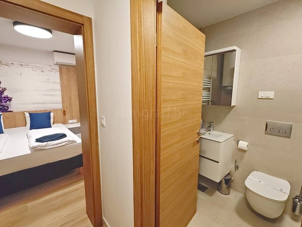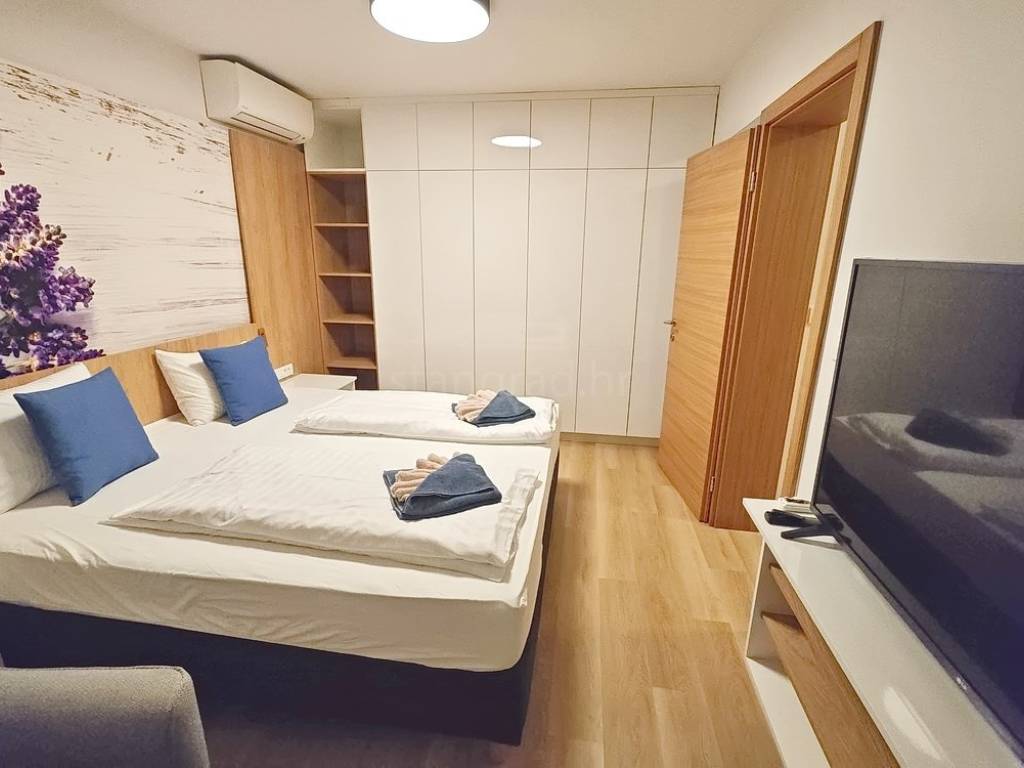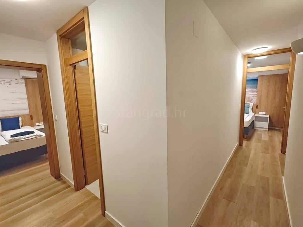 Razmatrajući nekretninu prema vrsti, ovo je prostrani jednoetažni apartman. U suvremeno građenom objektu, apartman se prostire preko 1. etaže. Površina ovog apartmana iznosi ukupno 110 m2. Tom površinom obuhvaćeni su ulazni hodnik, dnevni boravak i kuhinja s blagovaonicom, 4 spavaće sobe, 3 kupaonice, velika natkrivena terasa i spremište u podrumu. Nekretnina je kompletno opremljena modernim namještajem te suvremenom i kvalitetnom tehničkom opremom. Opisanoj nekretnini pripada i komadić urednog i dobro uređenog dvorišta površine 16 m2. U okviru vlasništva nekretnine, novi vlasnik stana raspolagati će sa dva parkirna mjesta. Povrh ranije opisanih svojstava, nekretnina je vrlo dobro orijentirana te pruža primamljiv pogled iz apartmana na more i prirodni krajolik.
