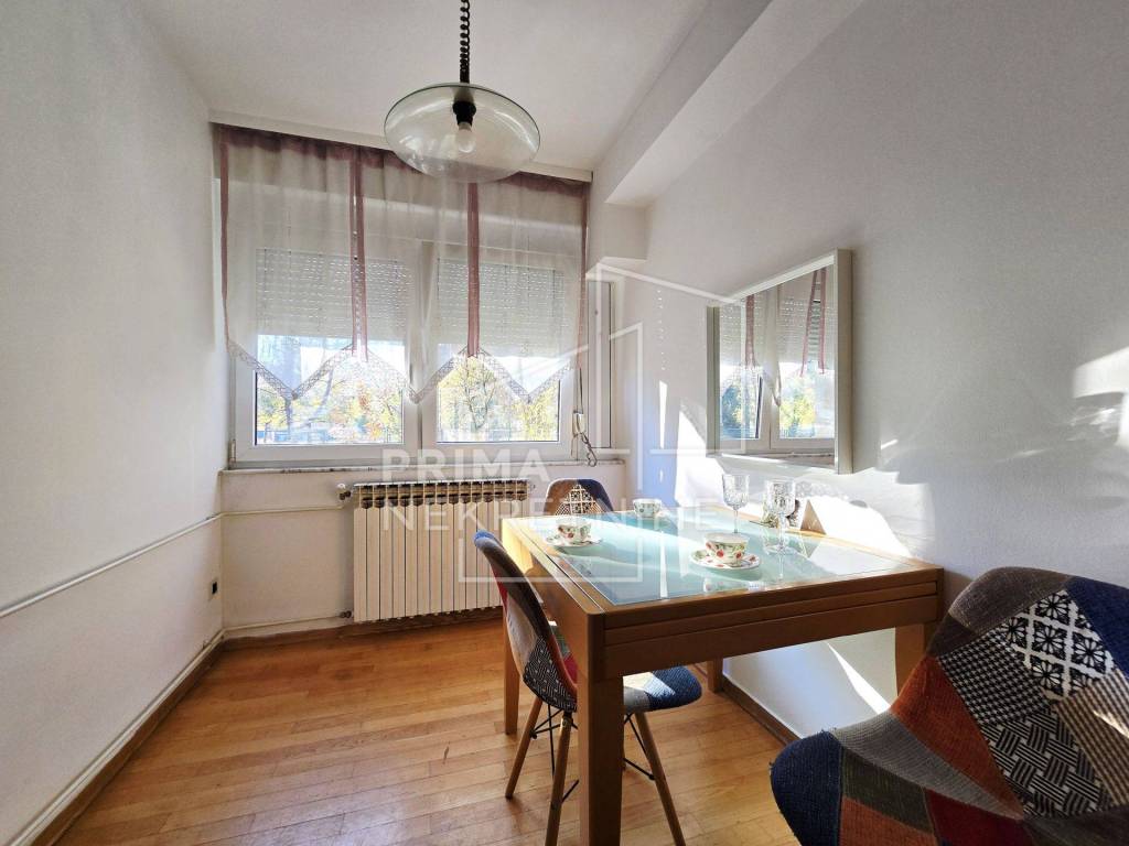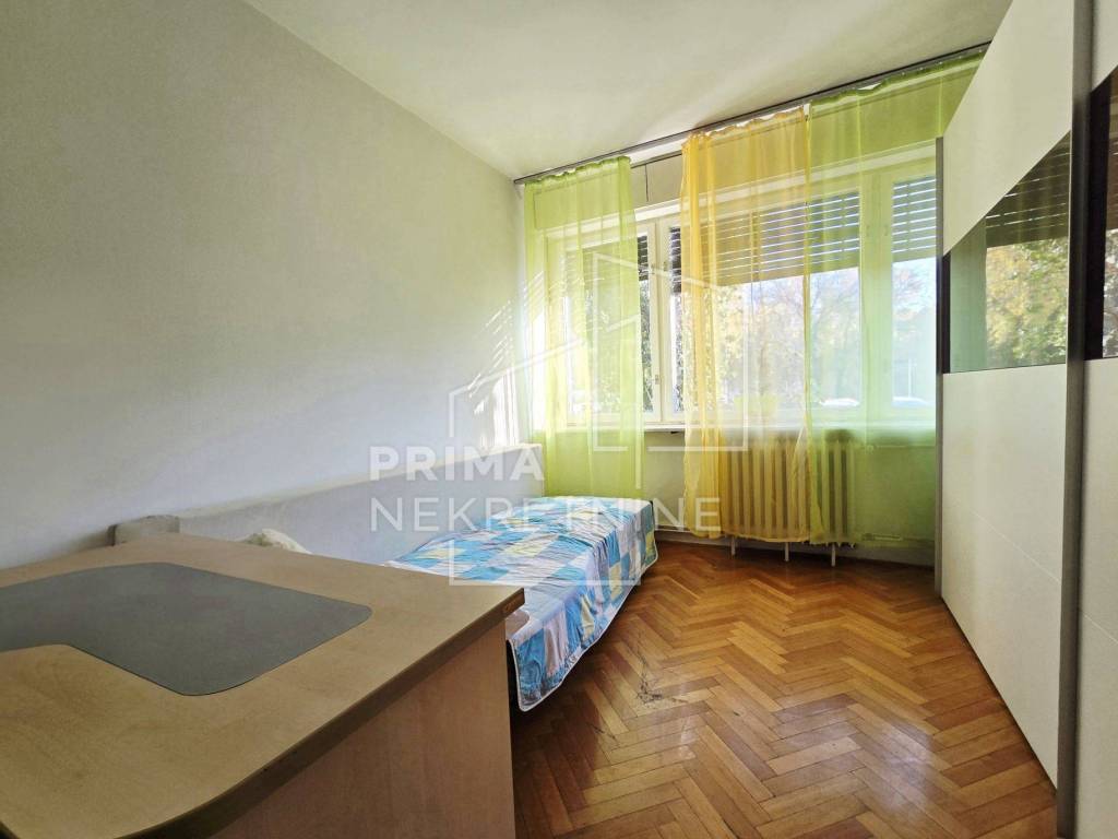 Na prodaju je prostran četverosoban stan površine 107,91 m2, smješten u prizemlju uredno održavane četverokatnice u ulici Ružmarinka - jednom od najtraženijih dijelova Maksimira.