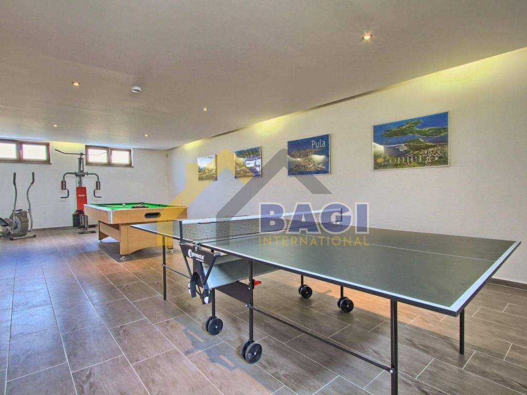 Stepenicama se spuštamo u podrum u kojem se nalaze razni sadržaji : fitness sprave, stolni tenis i bilijar.