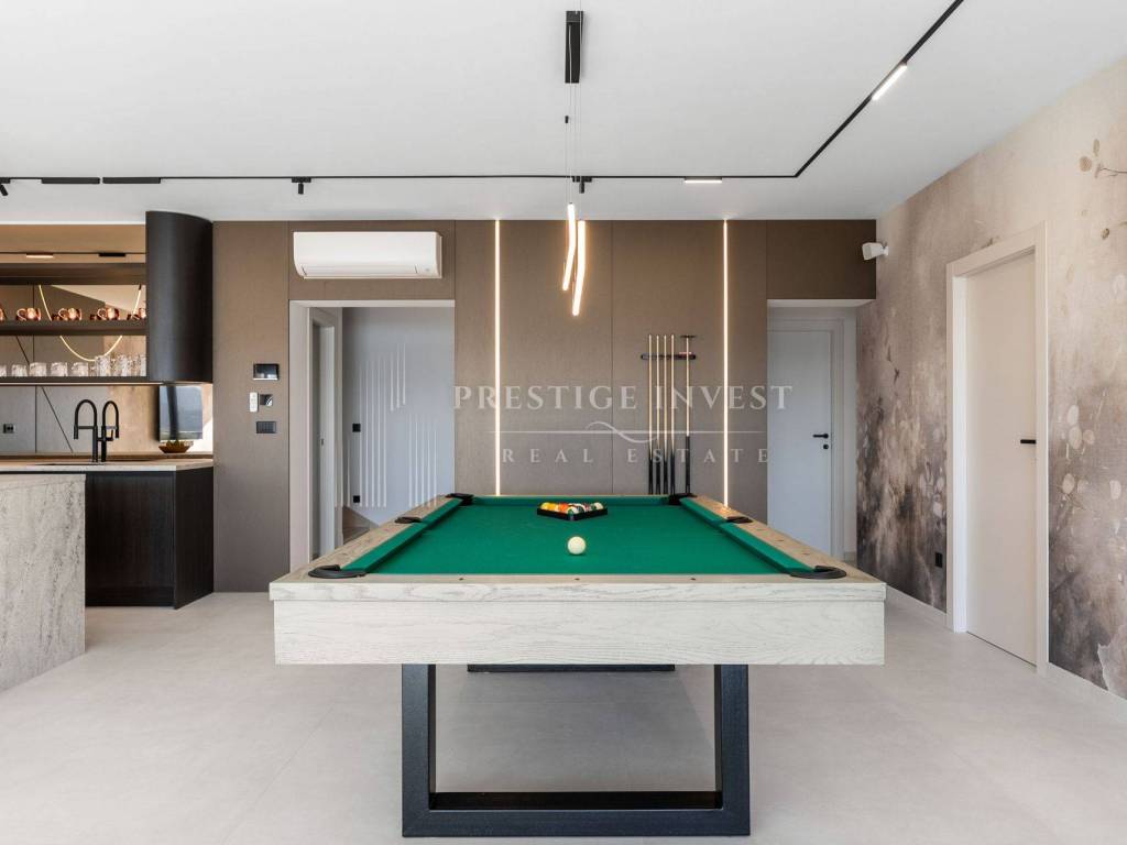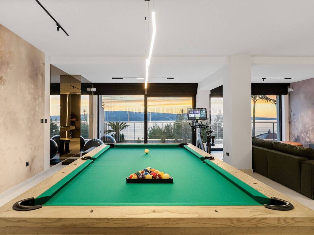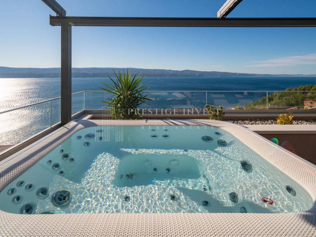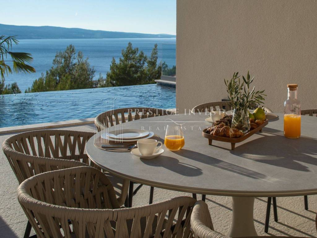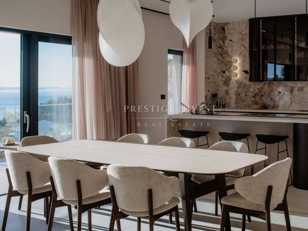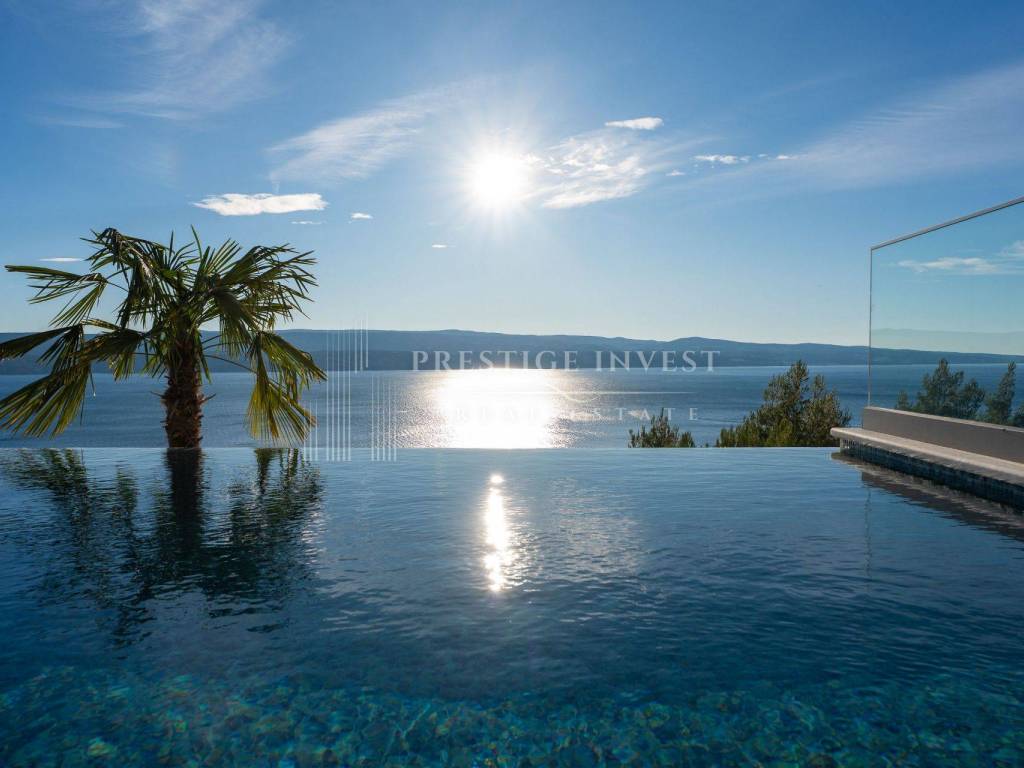 Na prodaju je luksuzna dizajnerska vila smještena u mirnom dijelu u blizini Omiša, s prekrasnim panoramskim pogledom na more. Vila je moderno projektirana, potpuno opremljena i namještena vrhunskim talijanskim namještajem te spremna za useljenje.