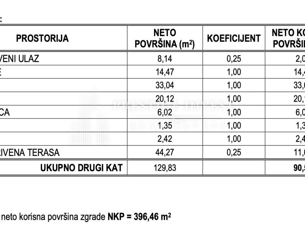 Ukupna neto korisna površina: 396,46 m²
