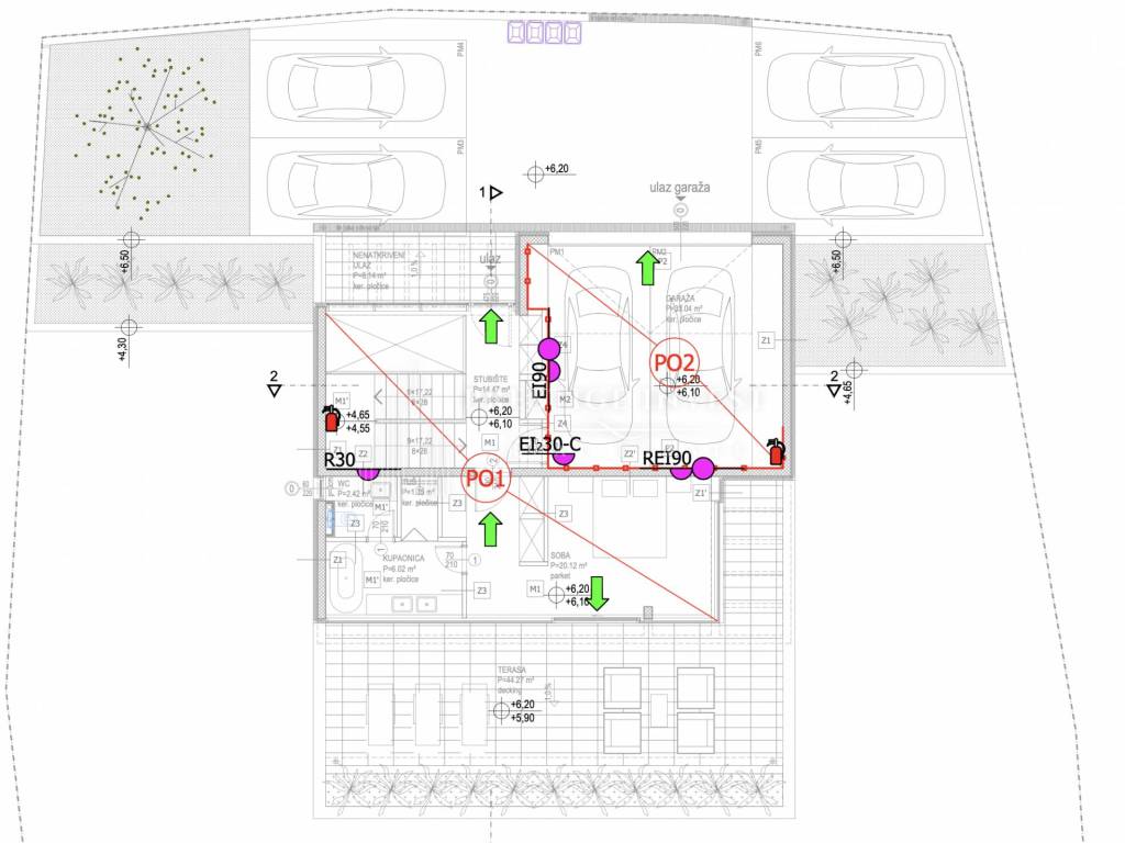 4 vanjska parking mjesta te garaža za 2 auta