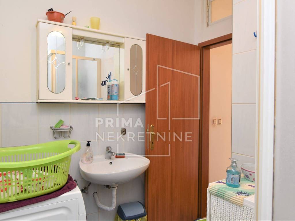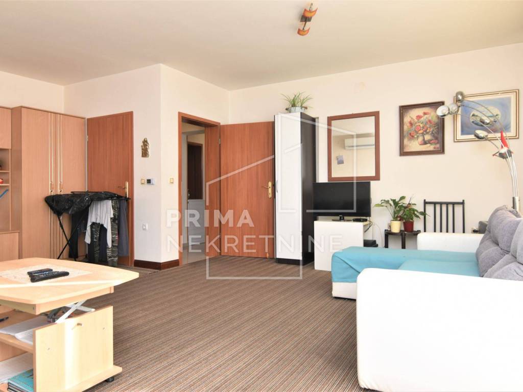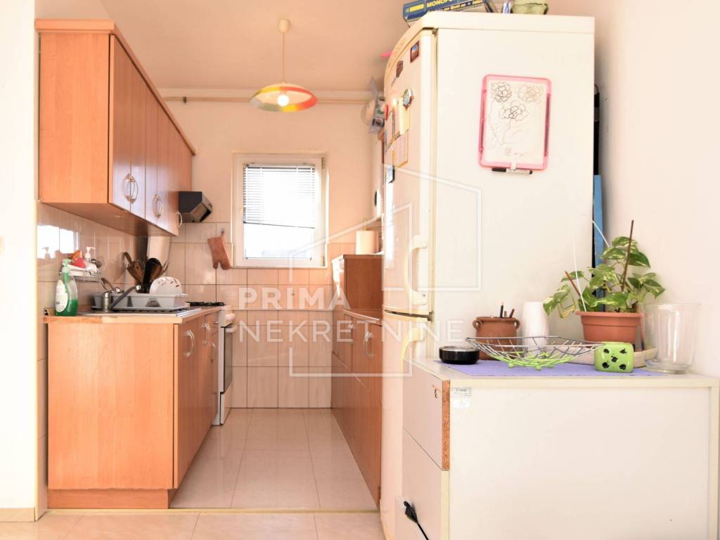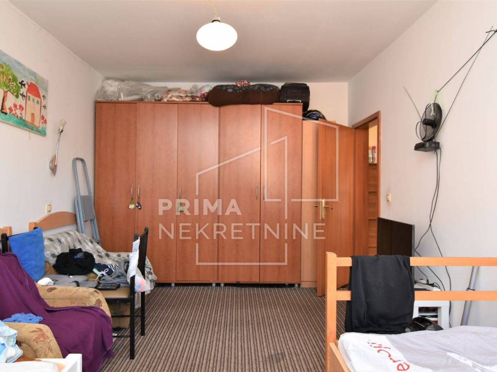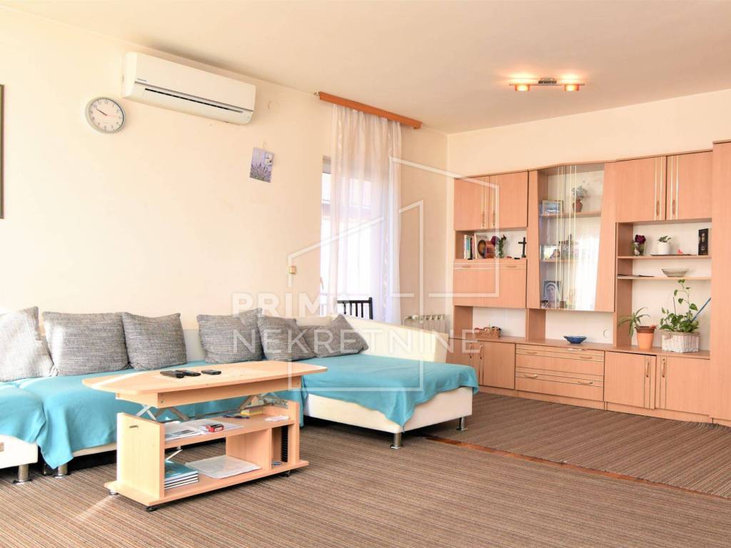 Sastoji se od velikog dnevnog boravka koji ima izlaz na balkon u obliku slova L i prostire se cijelom dužinom i širinom istog. Kuhinja s blagovaonicom ima izlaz na manju terasu. Stan također ima dvije velike spavaće sobe, kupaonicu, zaseban toalet i prostrani hodnik. Zbog dovoljne kvadrature i broja prozora moguće je dobiti treću spavaću sobu. Novi kondenzacijski bojler postavljen je 2021. godine. Stanu pripada i parkirno mjesto u dvorištu kuće. Također postoji mogućnost kupnje dodatne garaže.