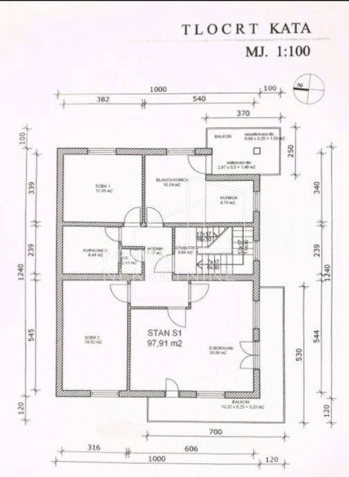 U ponudi je prostran stan površine 97.91 m2 u mirnom, širem centru Dugog Sela. Stan se nalazi na prvom katu etažirane kuće s ukupno pet stanova.