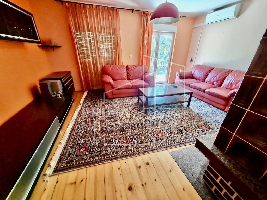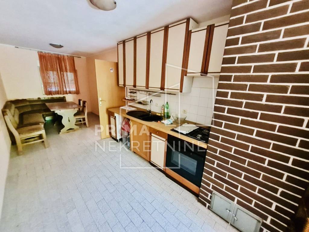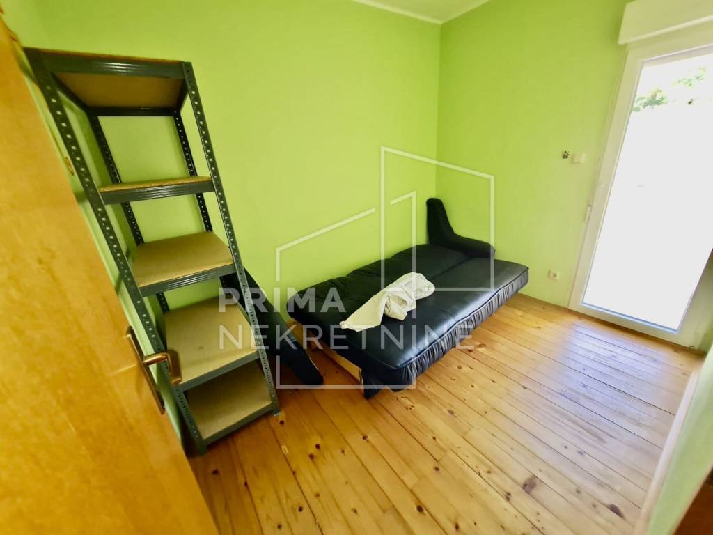 Prizemlje ukupne površine 56 m2 se sastoji od predsoblja, kuhinje s blagovaonicom, dnevnog boravka u kome je kalijeva peć na drva te lođe na koju se nadovezuje vrt od 35 m2.