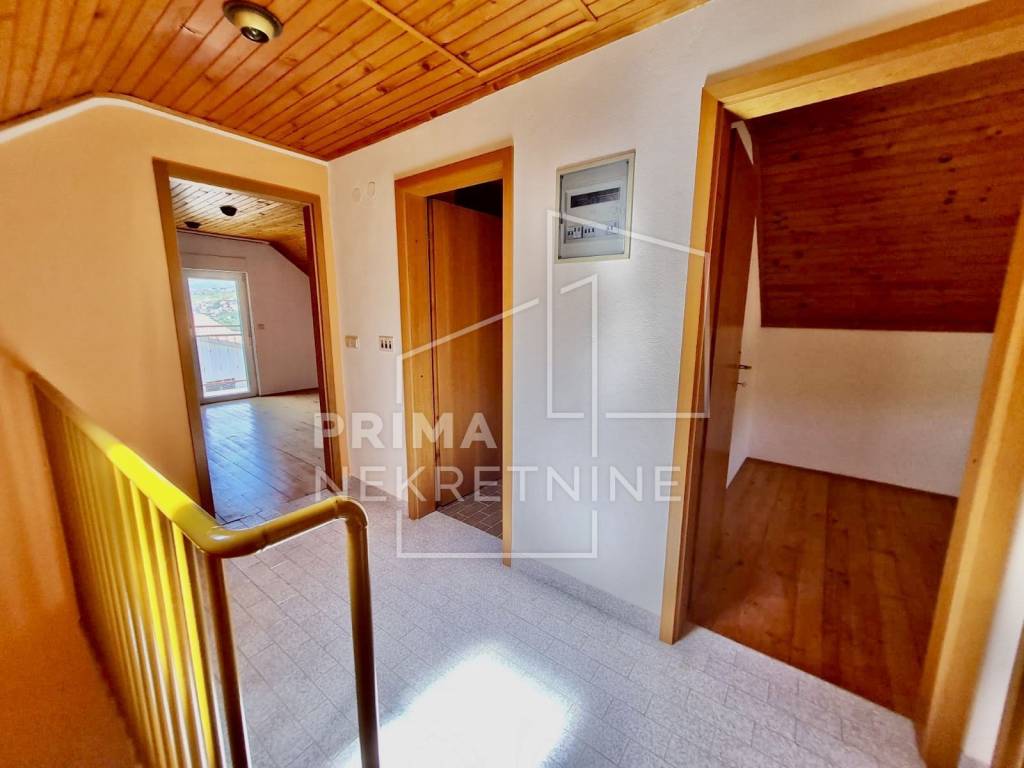 Na prvoj etaži ukupne površine 56m2 nalaze se tri spavaće sobe, kupaonica, dvije lođe, stepenice.
