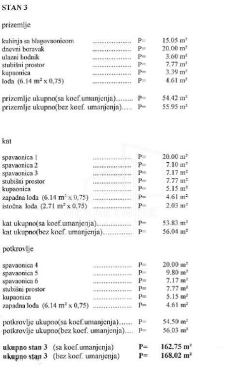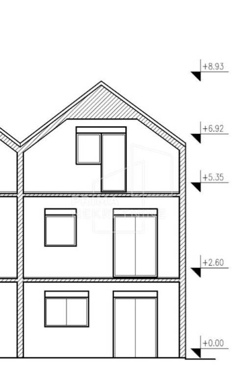 Kuća u nizu na tri etaže, stambene površine 168 m2 s vanjskim dijelom; vrtom od 35 m2 i dva parkirna mjesta.