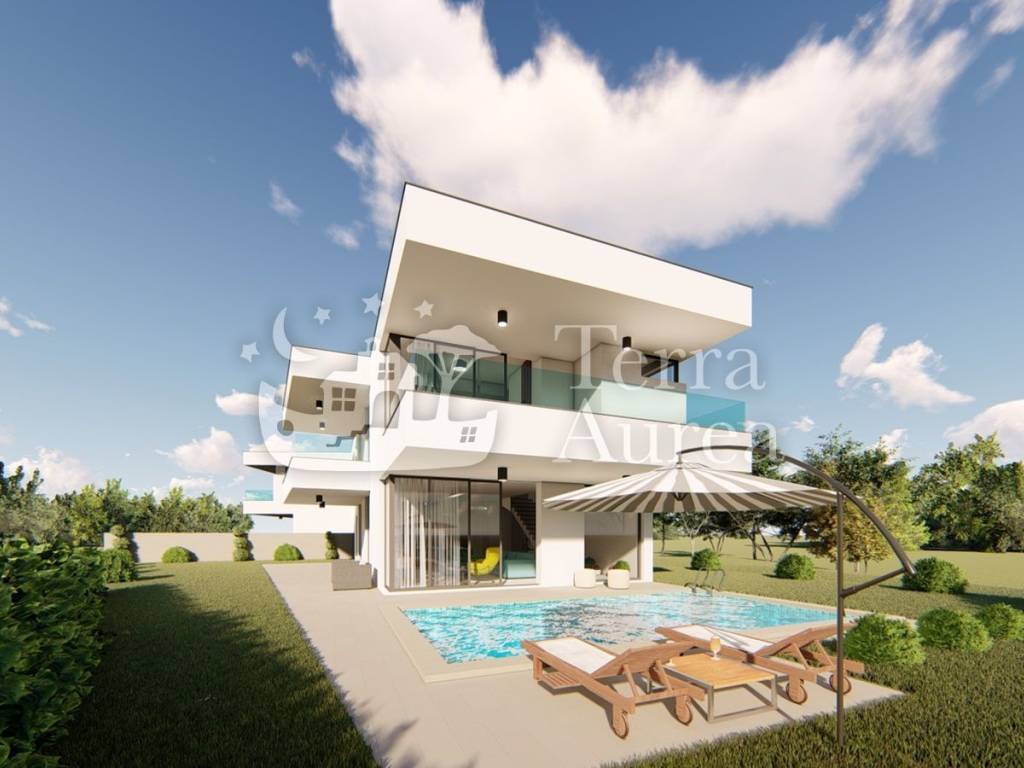 Ova moderna nekretnina obuhvaća stambenu površinu od 185 m2, a proteže se na dvije etaže prizemlje i prvi kat.