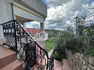 Prva kuća je djelomično preuređena i sastoji se od dvije razine. U podrumu se nalazi praktičan prostor idealan za spremanje i odlaganje dok prizemlje sačinjava prostrani dnevni boravak, kuhinju, dvije udobne spavaće sobe i dvije kupaonice. Osim toga, ova kuća ima i praktično spremište za pohranu stvari koje nisu u svakodnevnoj upotrebi. Nekretnina ima dvije prostrane terase i vrt koji omogućuju da uživate u svježem zraku i veoma lijepom pogledu na more.