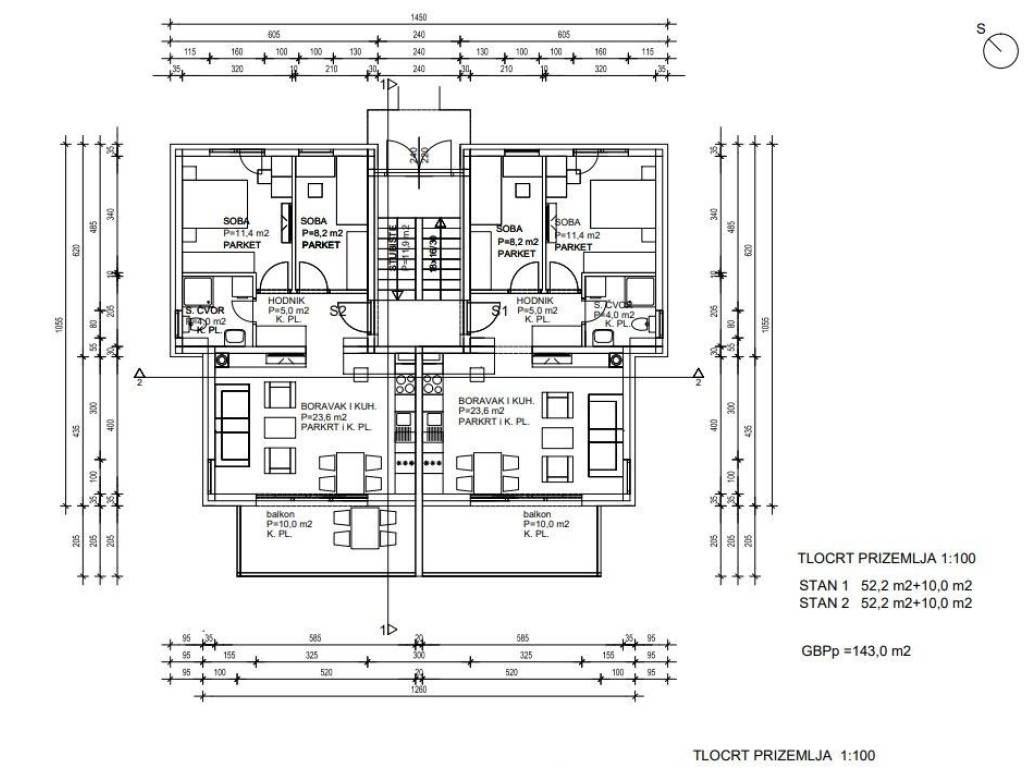 Stan S2-2 nalazi se u prizemlju moderne stambene zgrade i ističe se funkcionalnim rasporedom te prostranim vanjskim prostorima. Neto korisna površina 59,10 m².