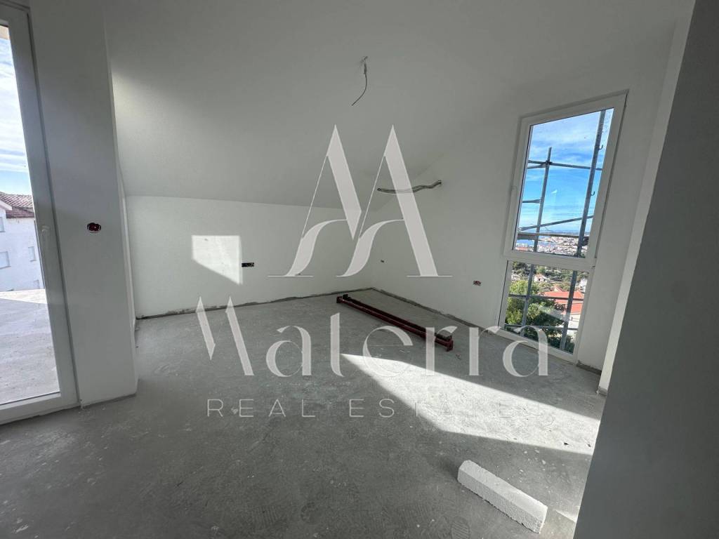 S terasa se pruža otvoren pogled na more, što stanu daje dodatnu vrijednost te ga čini idealnim za cjelogodišnje uživanje u mediteranskom ambijentu.