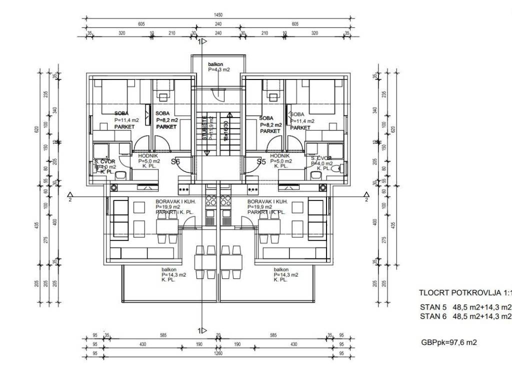 Stan S5-2 nalazi se na drugom katu moderne stambene zgrade i ističe se funkcionalnim rasporedom te prostranim vanjskim prostorima. Neto korisna površina 57,65 m².