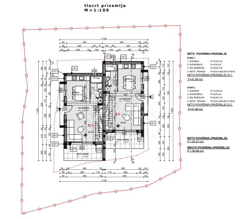 Samostojeća kuća sa dva dvoetažna stana u novogradnji sa planom završetka u ljeto 2023.godine. Privatni kolni prilaz kući u okruženju zelenila pruža potpunu privatnost,dok unutar okućnice je moguće smjestiti dodatne sadržaje. Mogućnost kupnje i zasebno stanova . Provjereni investitor u sustavu PDVa