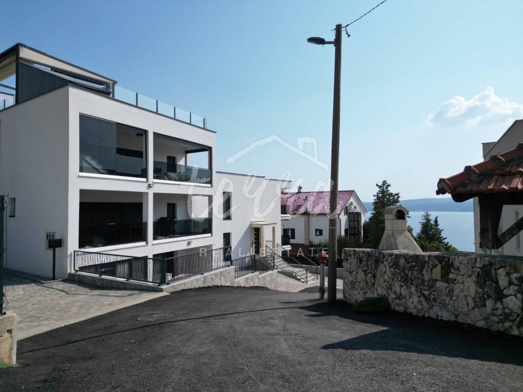 Prodaje se moderan penthouse smješten u stambenoj zgradi u kojoj su samo 3 stana, a nalazi se na kraju slijepe ulice, što garantira mir i odmor u ljetnim mjesecima. Udaljenost do mora je svega 300m.