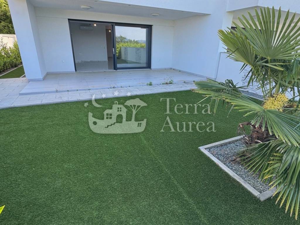 Apartmanu pripada uređena okućnica površine 130 m2, savršena za opuštanje ili druženja na otvorenom, kao i dva privatna parkirna mjesta.