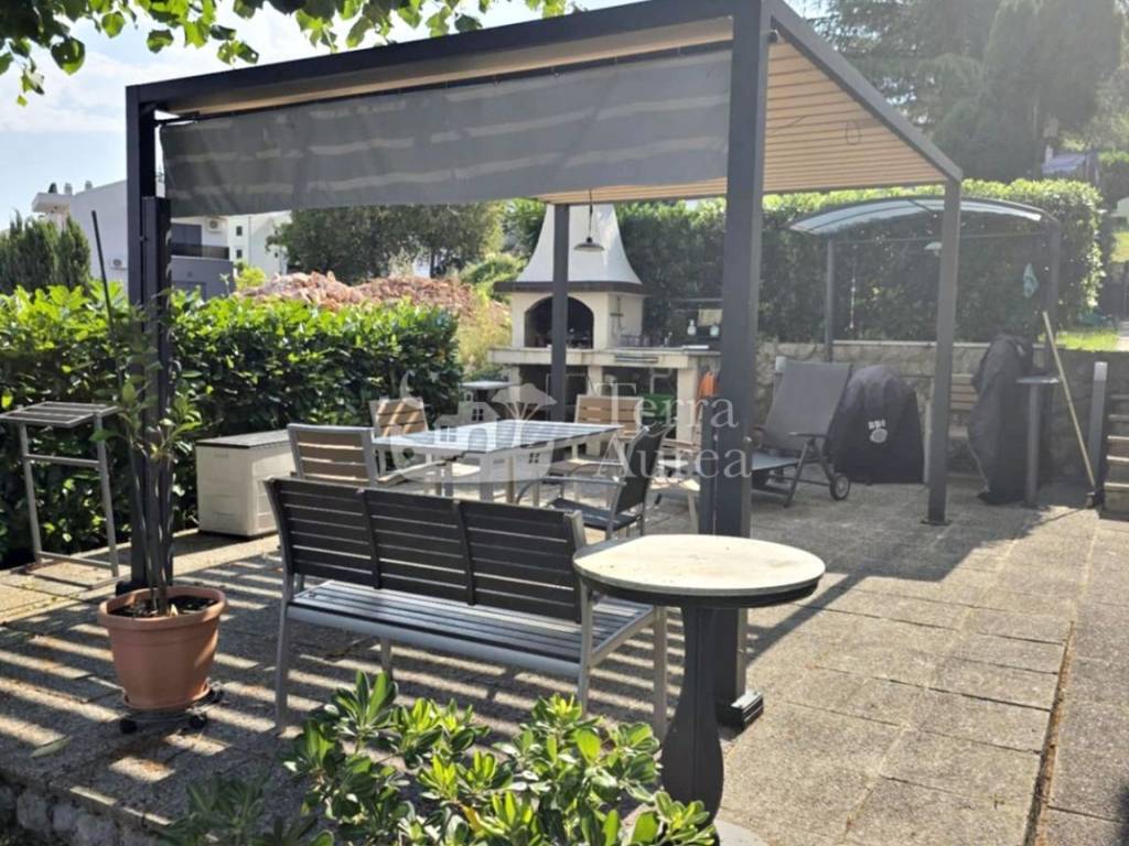 Praktičnost dodatno osiguravaju kotlovnica i spremište, dok se eksterijer kuće ističe uređenom okućnicom koja odiše elegancijom i mediteranskim šarmom.