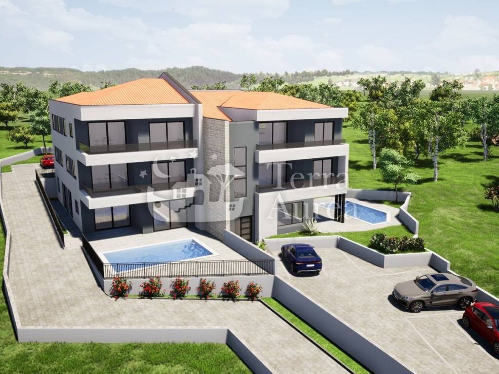 Apartman se sastoji od prostranog otvorenog dnevnog boravka s kuhinjom i blagovaonicom, tri spavaće sobe, dvije kupaonice, dodatnog wc-a te velike terase s prekrasnim pogledom na more – savršene za opuštanje i uživanje u mediteranskom okruženju.