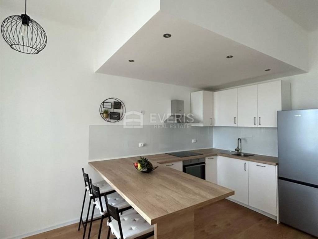 Stan se sastoji od jedne spavaće sobe, kuhinje, blagavaonice i dnevnog boravka i kupaone. Nalazi se na prvom katu stambene zgrade.