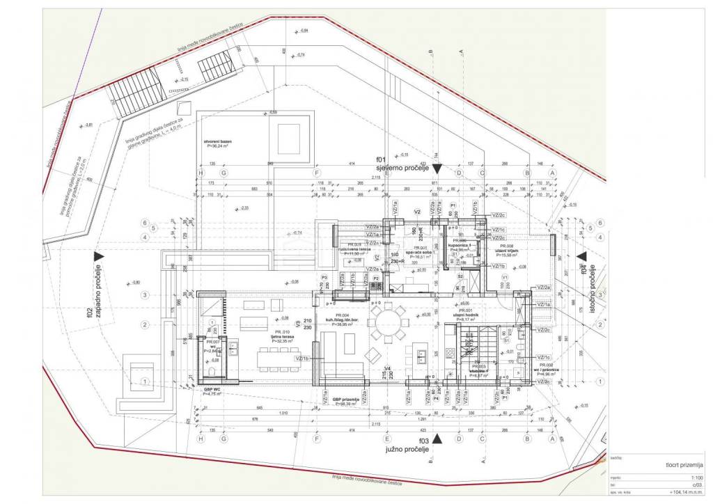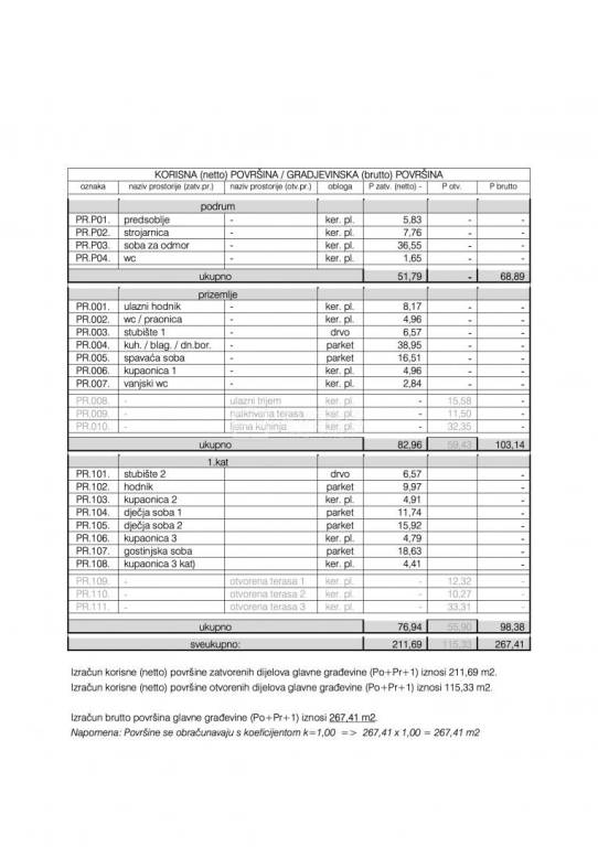 ▪ Otvorenog dijela površine 59,43 m2: ulazni trijem, natkrivena terasa i ljetna kuhinja.
