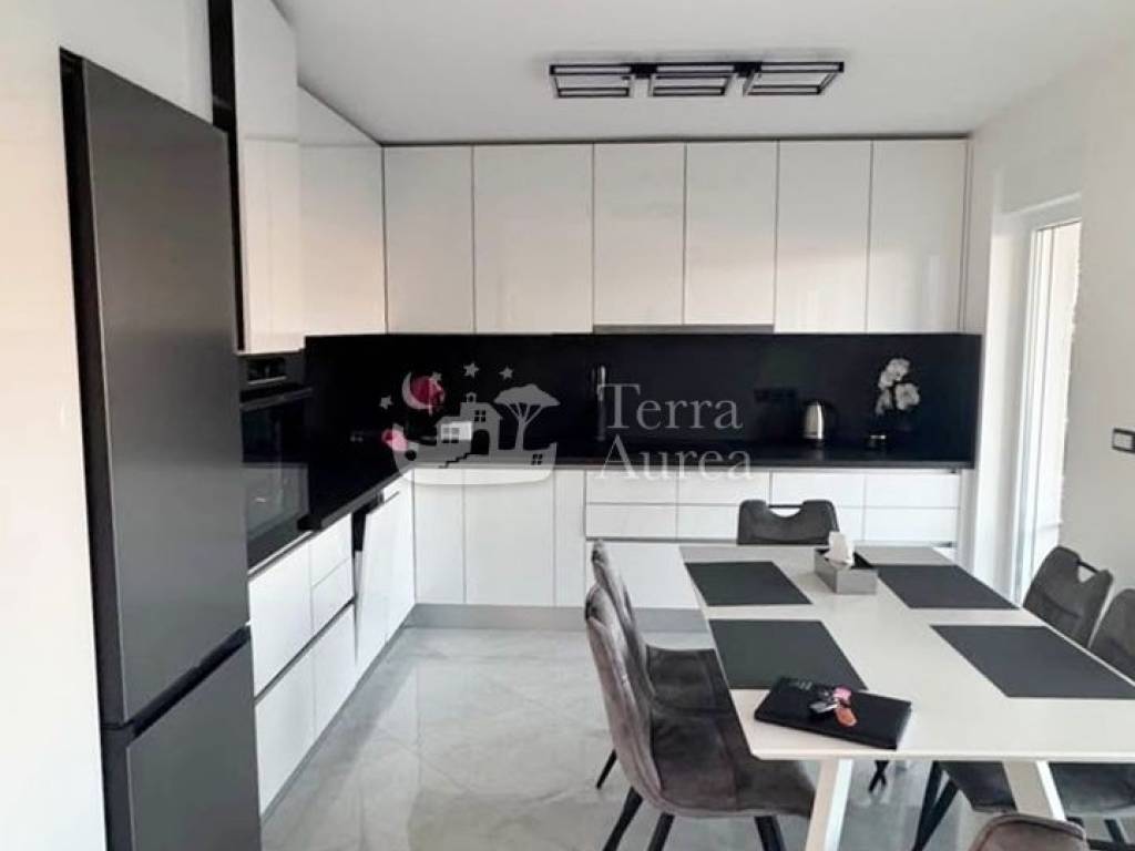 Unutrašnjost se sastoji od elegantnog dnevnog boravka otvorenog koncepta, povezanog s modernom kuhinjom i blagovaonicom, čineći reprezentativan prostor idealan za svakodnevni život i ugodna druženja. Tu su i dvije komforne spavaće sobe te moderna kupaonica opremljena walk-in tušem.