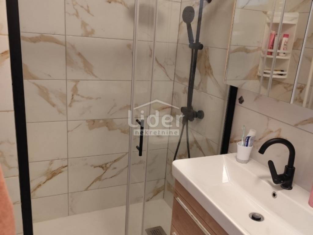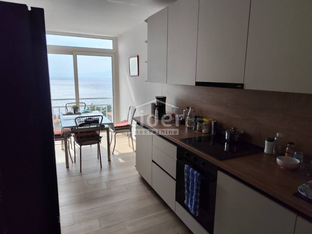 Pećine, stan kompletno adaptiran 2024. god. i kompletno namješten, sastoji se od kuhinje i dnevnog boravka u otvorenom prostoru te dvije spavaće sobe sa bračnim krevetima. Osim toga ima mali WC, zatim posebno kupaonica sa školjkom i walk-in tušem, posebno prostorija za veš mašinu. Prostrana lođa s predivnim pogledom na more, na koju se izlazi iz dnevnog boravka i iz jedne sobe.