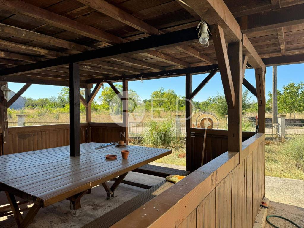 Kuća ima 600 kvadrata dvorišta, vanjski komin i drvenu pergolu.